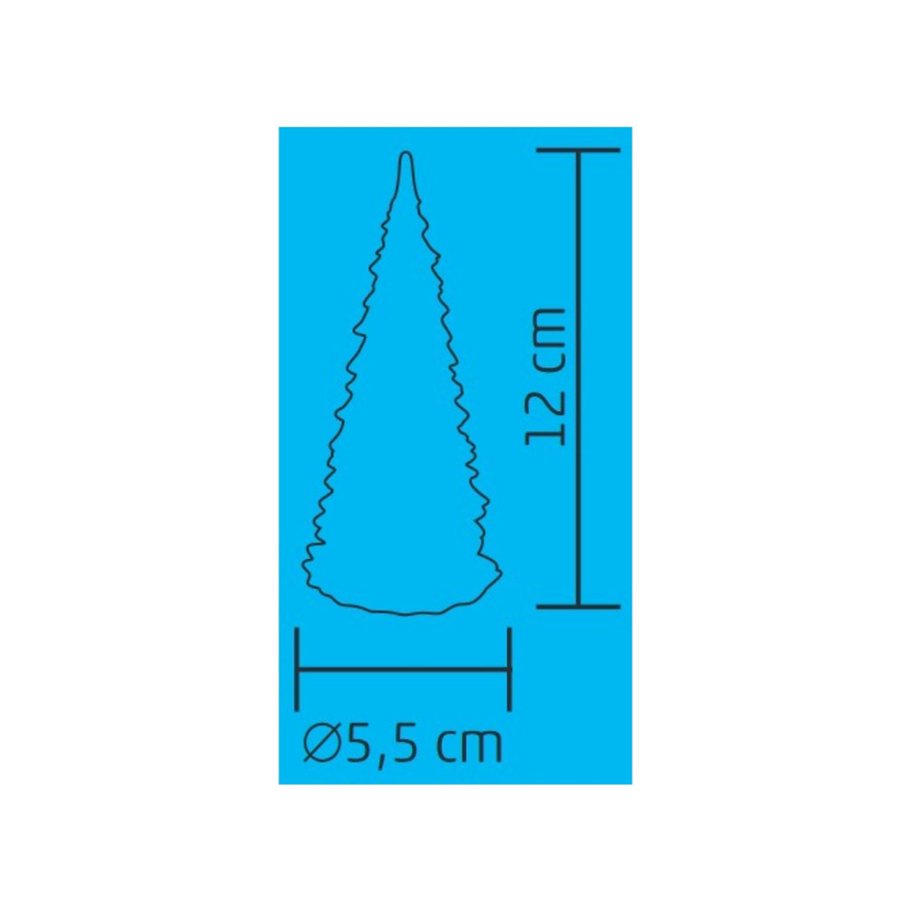 12 LED-es asztali dísz segítségével már megalapozhatja a karácsonyi hangulatot. A beltéri fenyőfa egy 3D akril dekoráció, aminek fényét 1 darab színváltóLED biztosítja. A világítást ki- és be lehet kapcsolni. A dekoráció átmérője: 5,5 cm. Magassága: 12 cm.