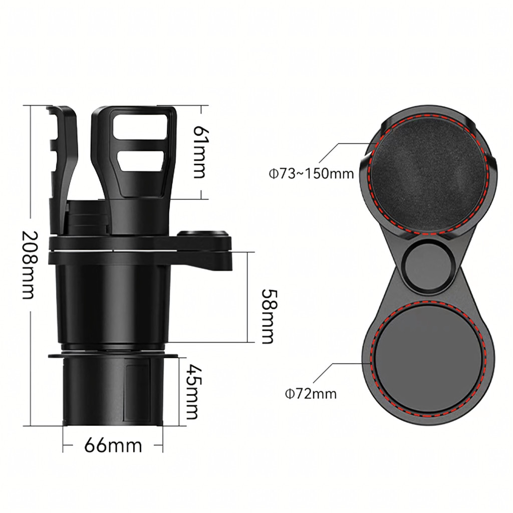 Univerzális 2 az 1-ben autós tartó – praktikus italrendező állítható átmérővel és egy további kisebb tartóval . Tartós ABS-ből készült, stabilizálja a poharakat és palackokat, megakadályozva a kiömlést vezetés közben. Tökéletes utazáshoz és mindennapi használatra.