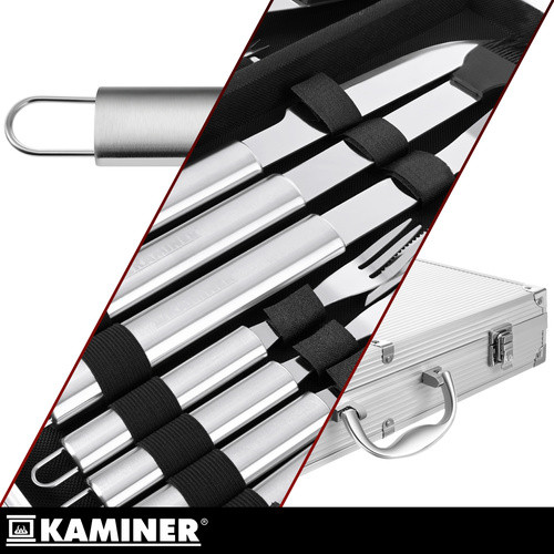 Elege van abból, hogy fogót, spatulát és evőeszközöket kell keresgélnie közvetlenül a grillezés előtt? Ez a Kaminer készlet mindent egyetlen alumínium dobozban tárol – egy komplett grillezési és tálalási eszközkészlet egy helyen . Csak fogja meg a dobozt, és máris indulhat a kertbe, a telekre vagy kirándulásra.