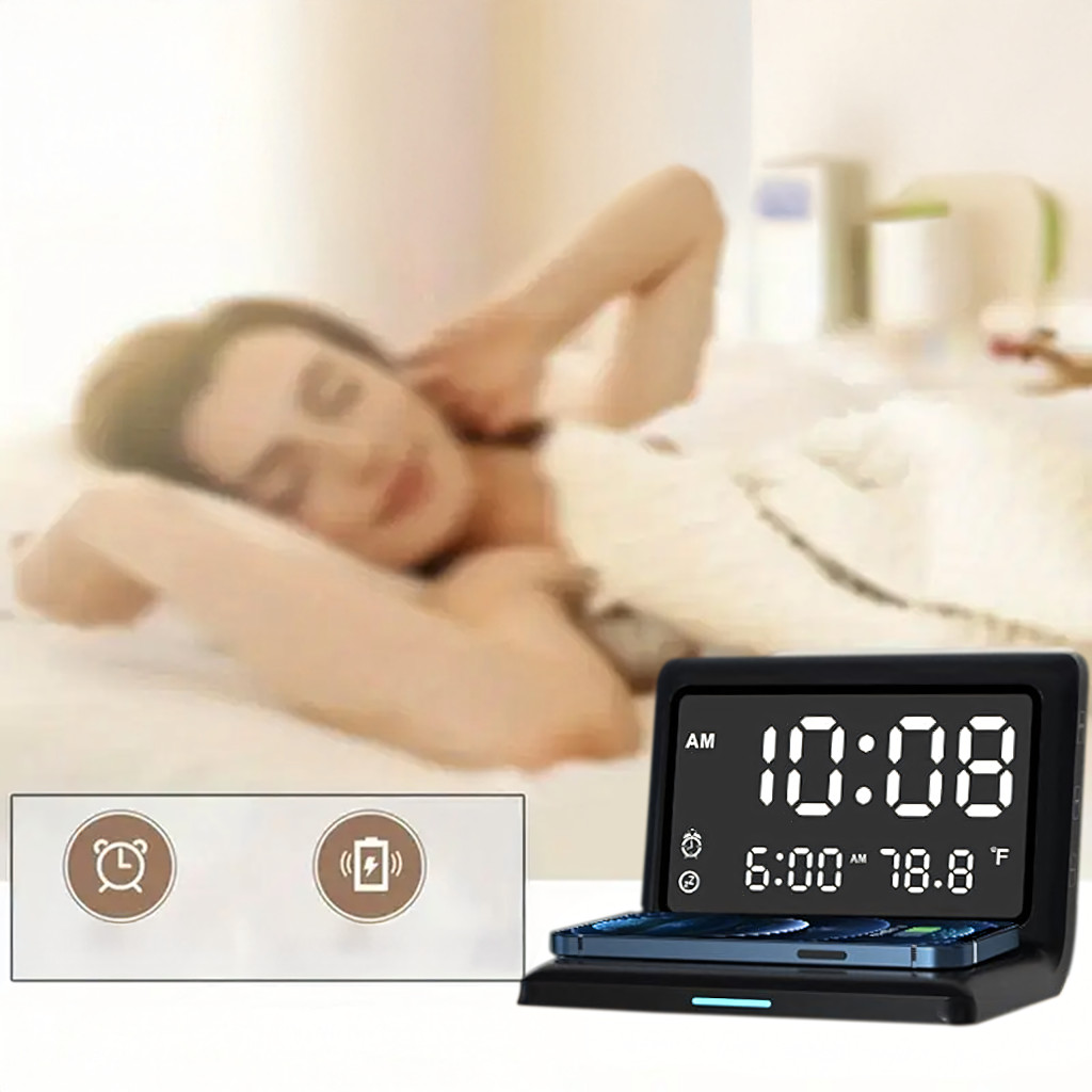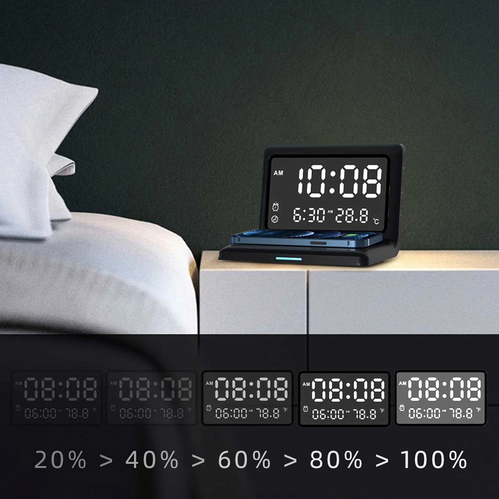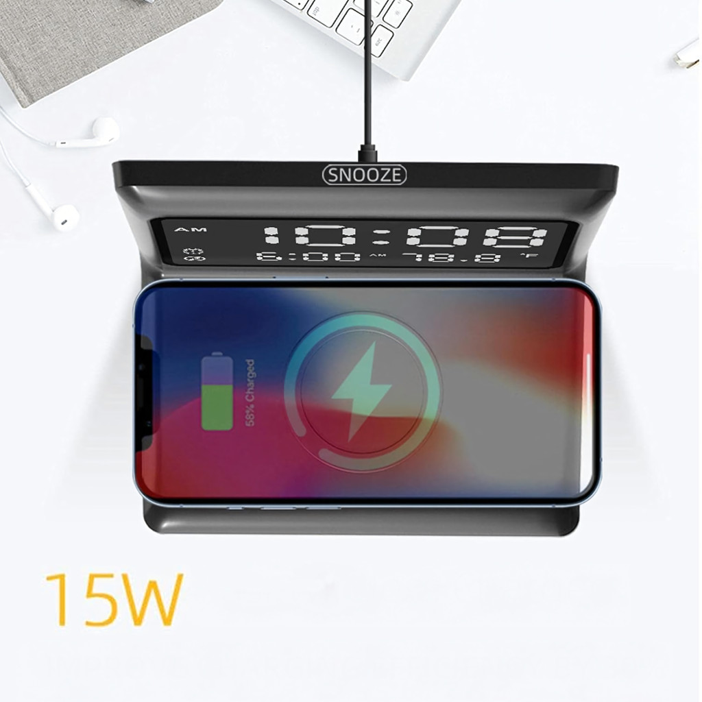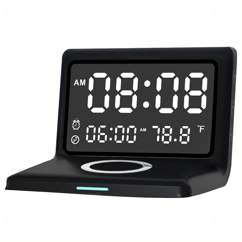 3 az 1-ben digitális ébresztőóra, vezeték nélküli töltő 15 W-os, hőmérővel