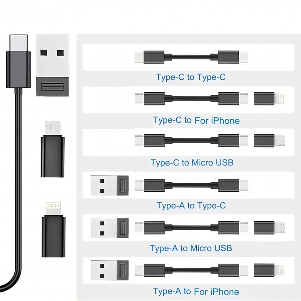 5 az 1-ben sokoldalúság – egyetlen készlet számos kábelt és adaptert helyettesít.