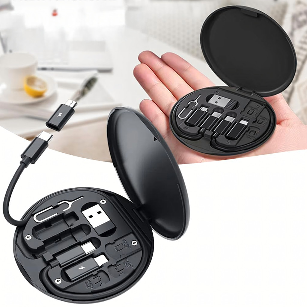 Ez az 5 az 1-ben USB-C, Lightning, Micro USB és USB-A adapterekkel ellátott szervező egy kompakt töltő- és adatátviteli készlet, amely tökéletes utazáshoz. SIM-kártyatartóval és három kártya számára kialakított hellyel rendelkezik, így a kényelem és a rendszerezés mindig kéznél van.