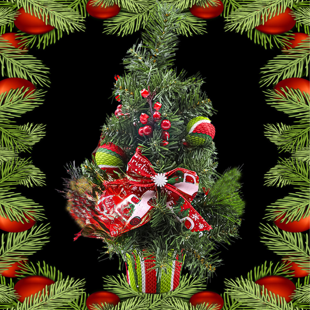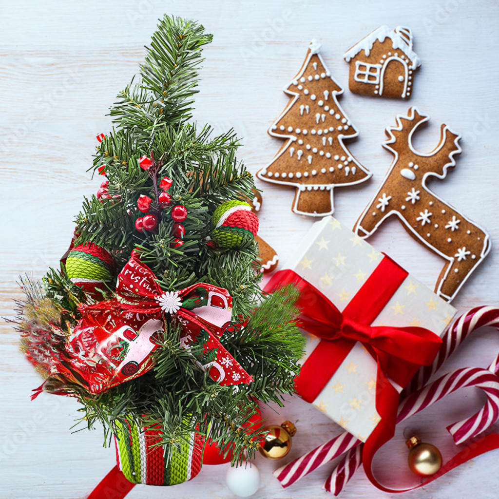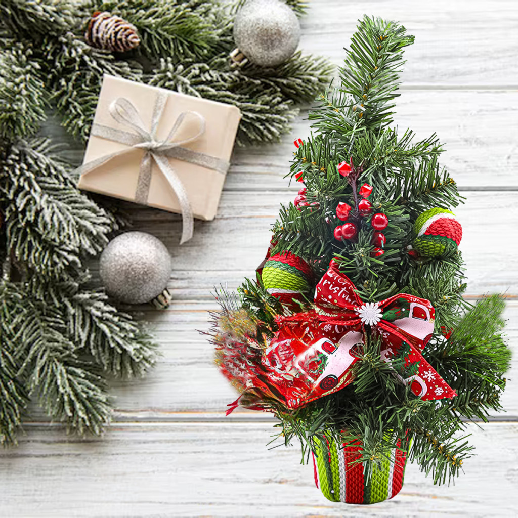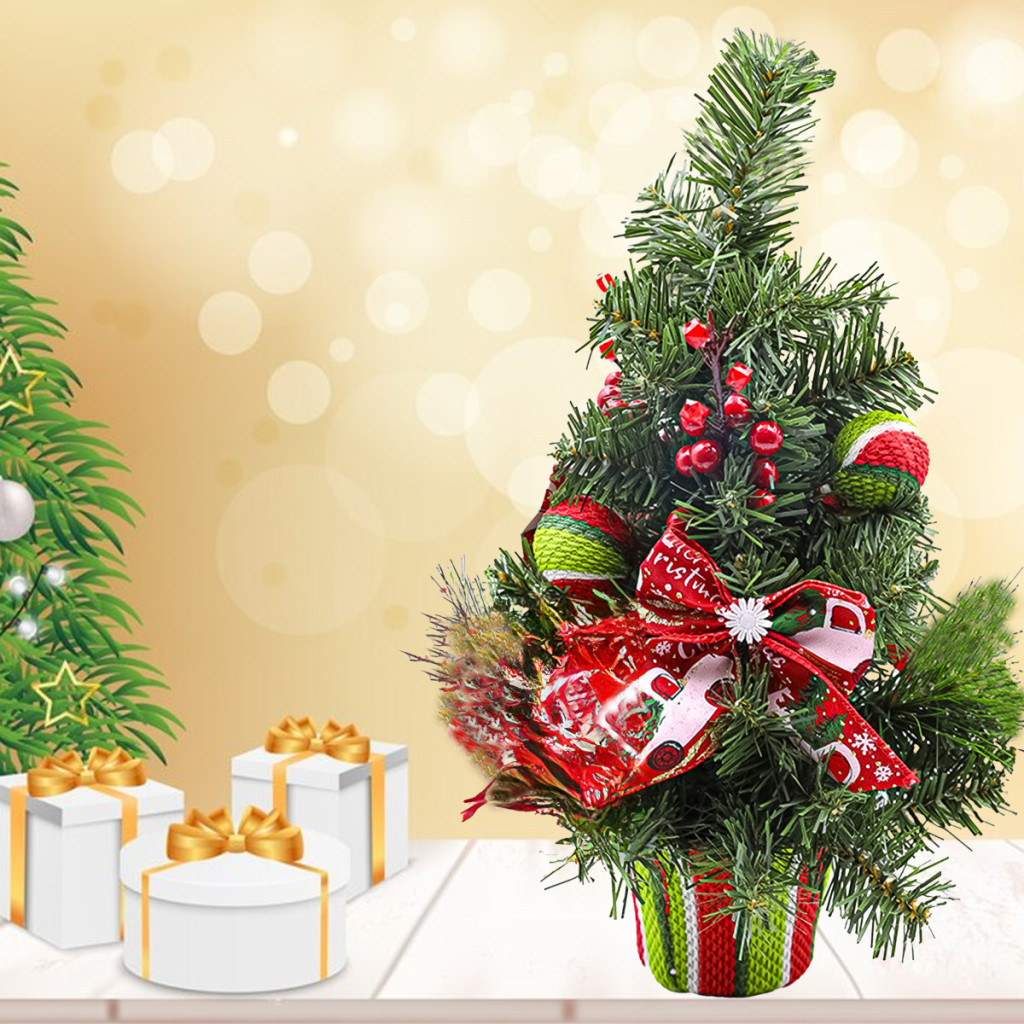Gyönyörűen feldíszített karácsonyfa, magassága 50 cm