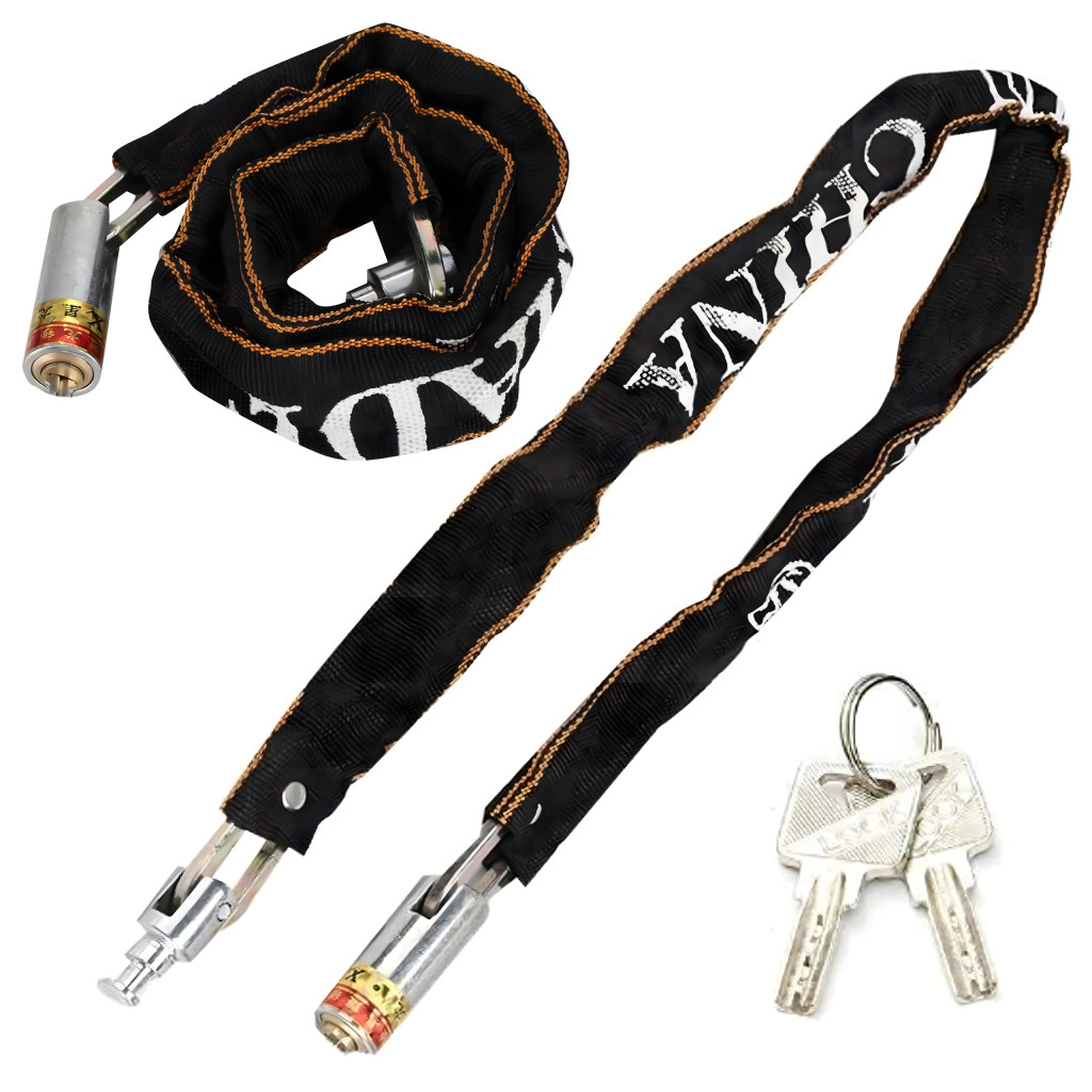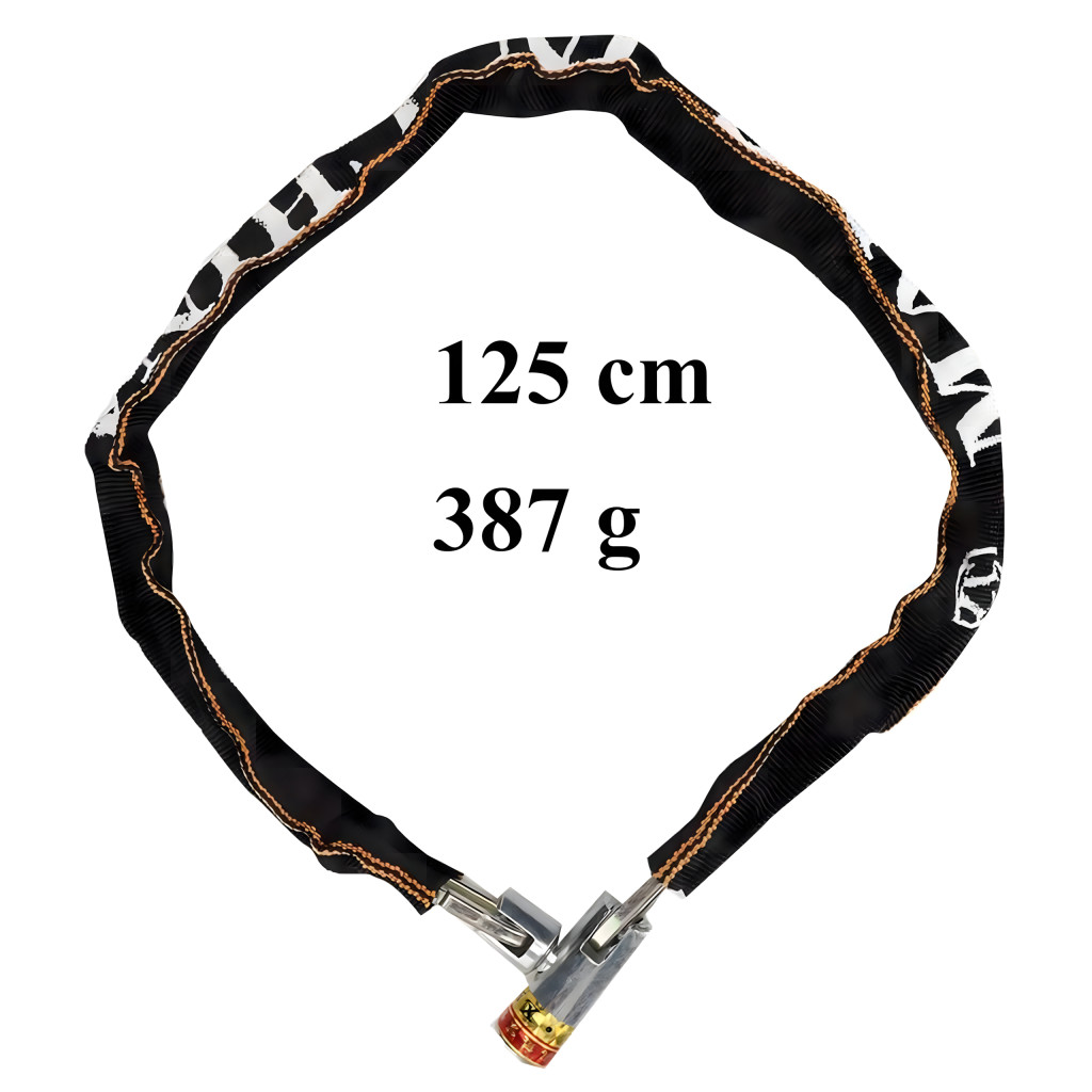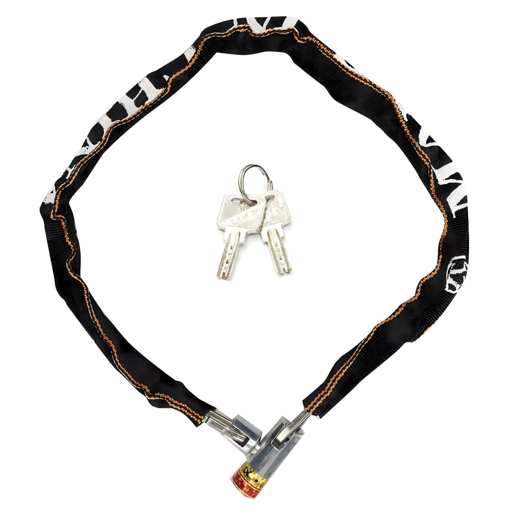 Masszív acélláncos lakat, 125 cm hosszú , nejlon borítással rögzítve , hogy megvédje a fényezést a karcolásoktól. Ideális kerékpárokhoz, motorkerékpárokhoz, robogókhoz, rollerekhez és kapukhoz. Racsnis zárral rendelkezik, és két kulccsal rendelkezik a kényelem és a biztonság érdekében . Könnyű és tartós – tökéletes a mindennapi használatra!