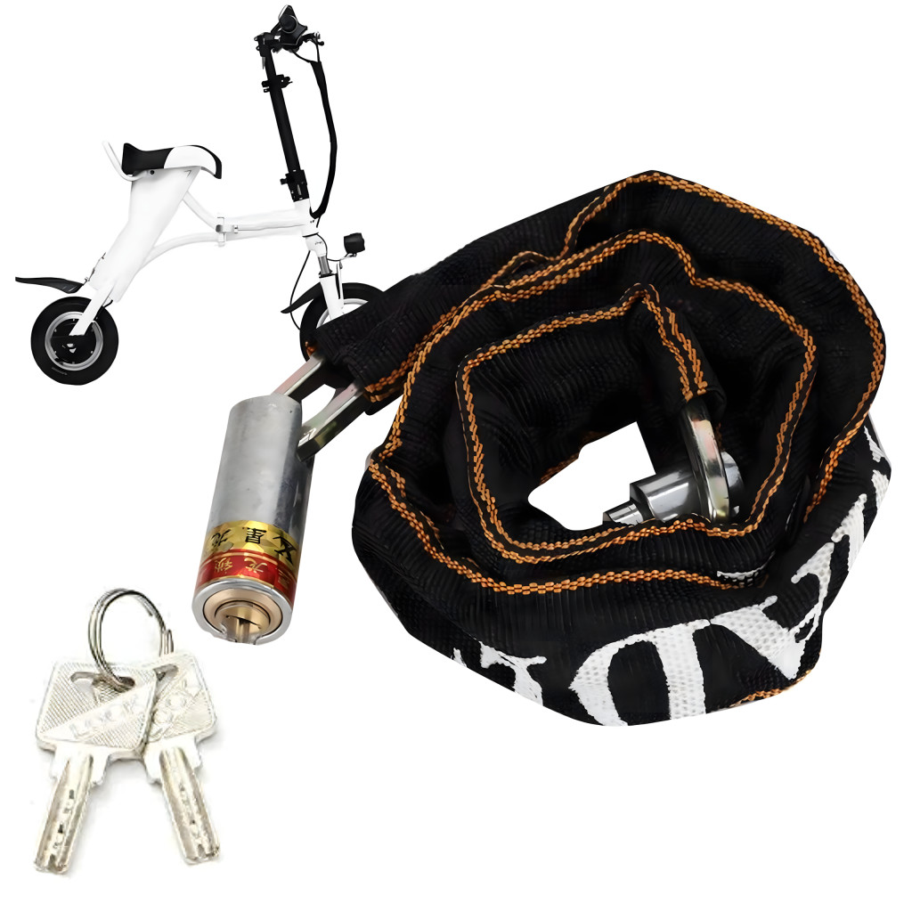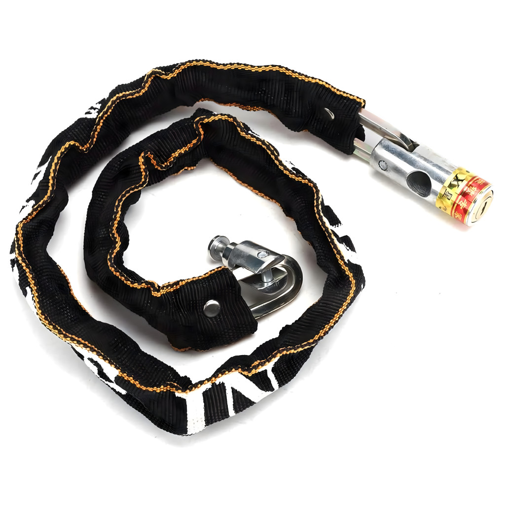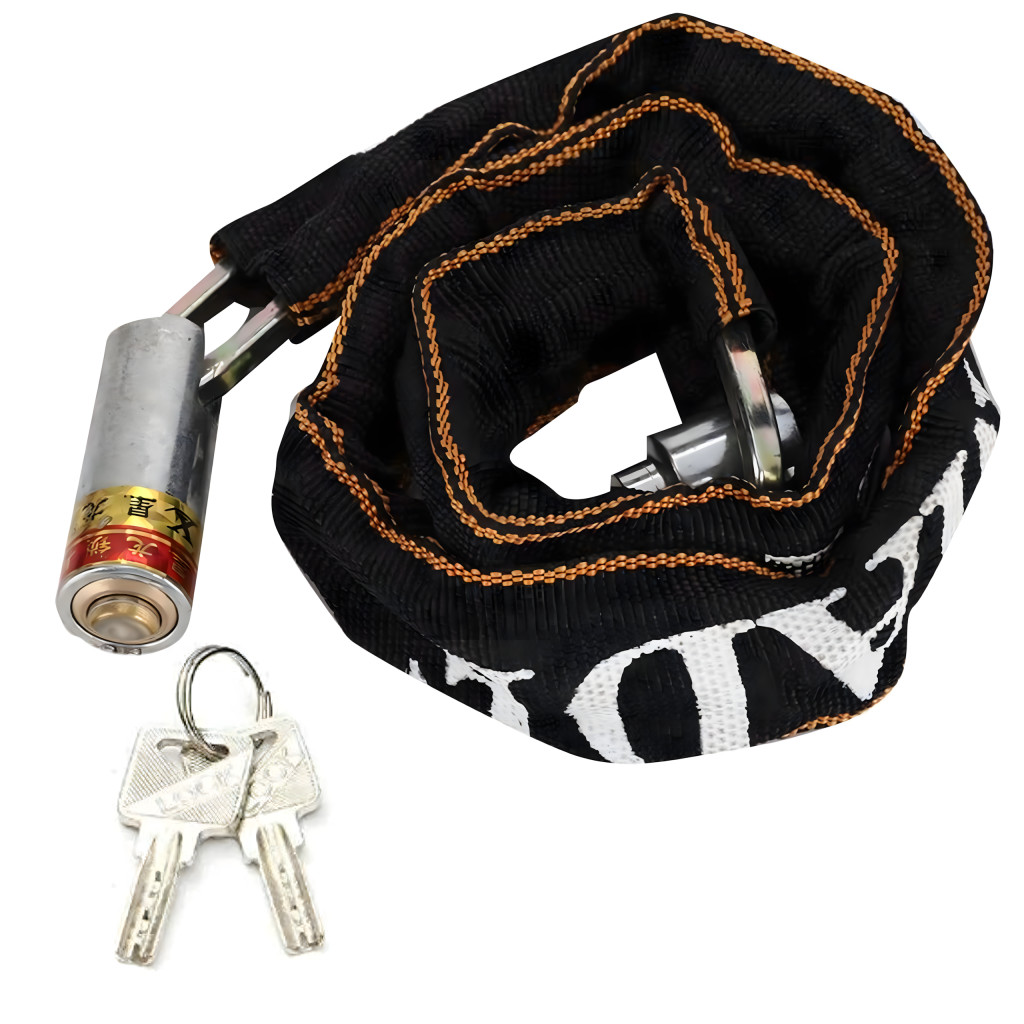 Masszív acélláncos lakat, 125 cm hosszú , nejlon borítással rögzítve , hogy megvédje a fényezést a karcolásoktól. Ideális kerékpárokhoz, motorkerékpárokhoz, robogókhoz, rollerekhez és kapukhoz. Racsnis zárral rendelkezik, és két kulccsal rendelkezik a kényelem és a biztonság érdekében . Könnyű és tartós – tökéletes a mindennapi használatra!