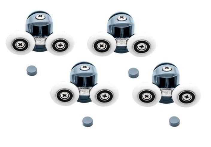 FELSŐ ÉS ALSÓ ZUHANYGÖRGŐ KÉSZLET A felső görgő állítható szorítóelemmel rendelkezik. A görgők csapágyakra vannak felszerelve, 4-6 mm vastagságú üveghez alkalmasak, különféle típusú zuhanykabinokhoz illeszkednek. A felső görgő állítható elrendezésű. SZILÁRD Nagyon masszív kidolgozás, ABS ház (erős műanyag). UNIVERZÁLIS Csapágyra szerelt görgő, amely tökéletesen együttműködik minden profillal. IDŐTÁLLÓA mag teljesen korrózióálló acélból készül. LEÍRÁS anyaga: műanyag + fém a készlet súlya: 200 g MÉRETEK felső tekercs (szélesség / magasság): 24x47mm alsó tekercs (szélesség / magasság): 24x34mm BELEÉRTVE felső görgők 4 db. leszerelhető alsó görgők 4 db. pufferek dugókészlet készlet súlya 200g