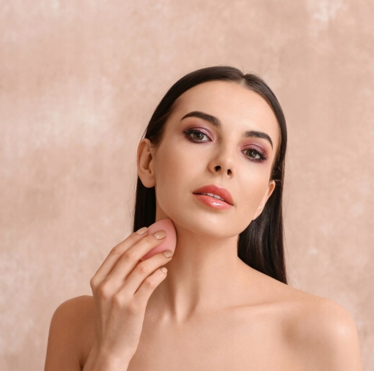 Miután benedvesítetted a szivacsot, mártsd bele a kezedre préselt arclemosóba. Ezután apró, "nyomkodó" mozdulatokkal kezdd el felvinni az arcodra – ez tökéletes, egyenletes, csíkmentes fedésről gondoskodik.