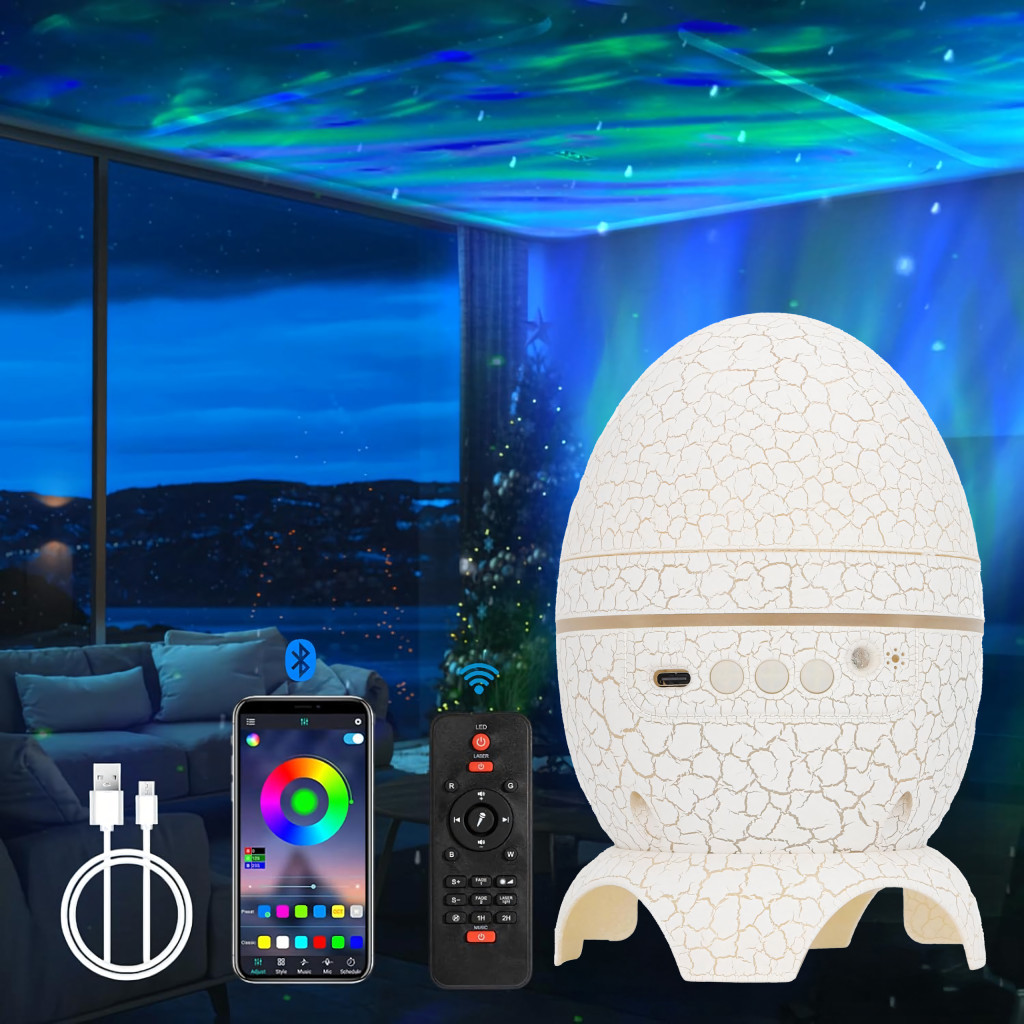 Változtasd át szobádat egy színes galaxissá zenével a háttérben! Ez az egyedi, dinoszaurusz tojás alakú projektor egy dizájner lámpát, egy csillagprojektort és egy Bluetooth hangszórót egyesít magában . Nem csak dekoráció – varázslatos hangulatot és kikapcsolódást teremt egyben!