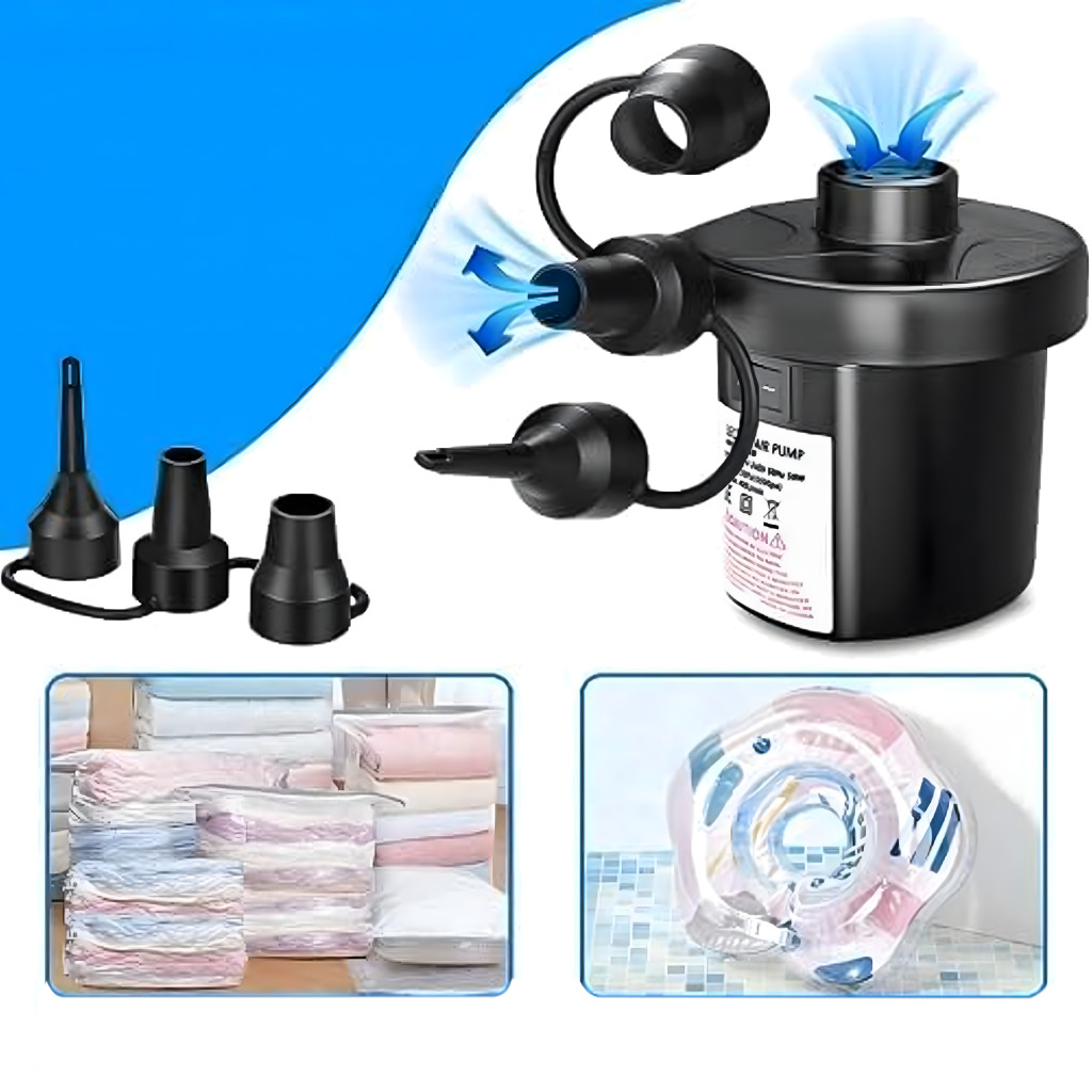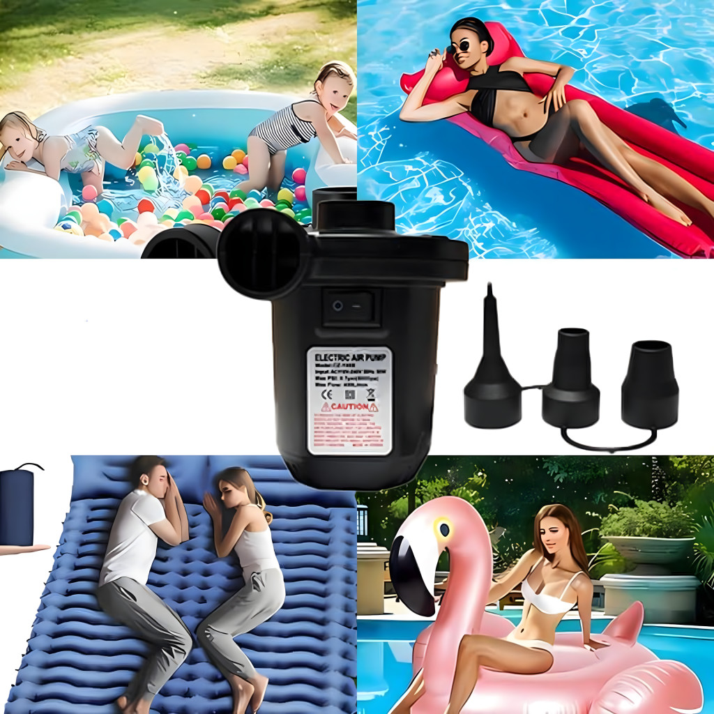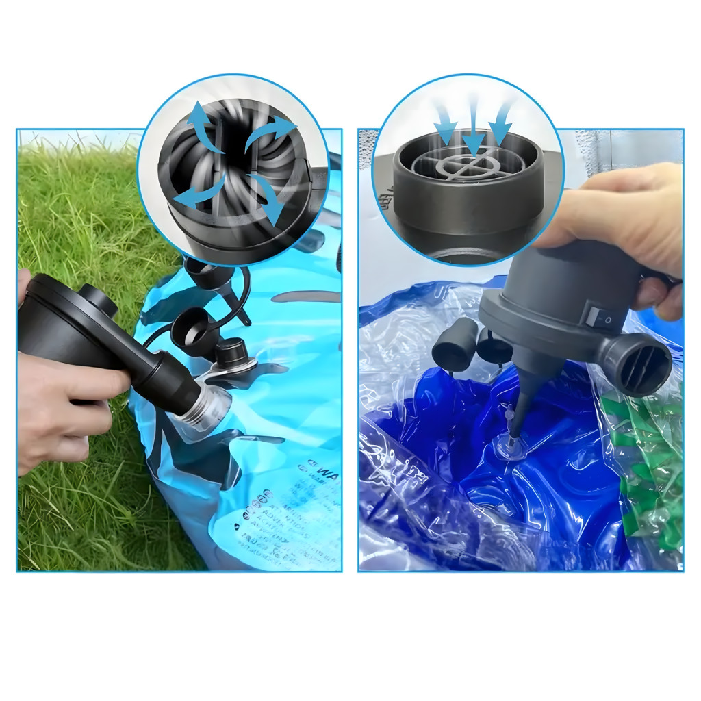 Sokoldalú és kompakt pumpa három fúvókával , felfújó és leeresztő funkciókkal , valamint hálózati árammal. Ideális matracok, medencék, tutajok és egyéb felfújható termékek gyors felfújásához . Megbízható működés és kényelem minden helyzetben!