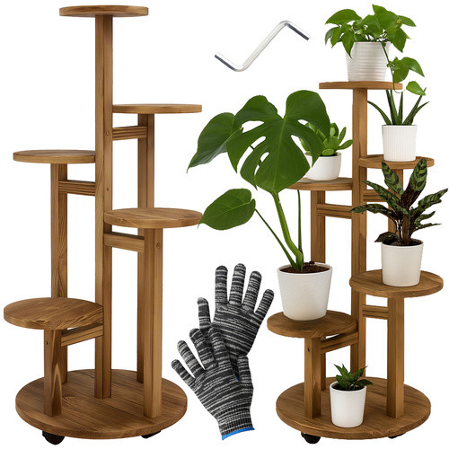 Fa álló virágtartó, magas, virágoknak és növényeknek, 6 szintes RUHHY állvány 7 cseréphez - elegancia és rend növényeinek