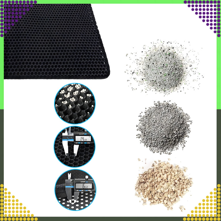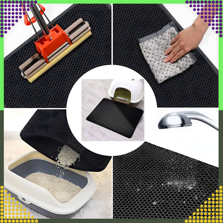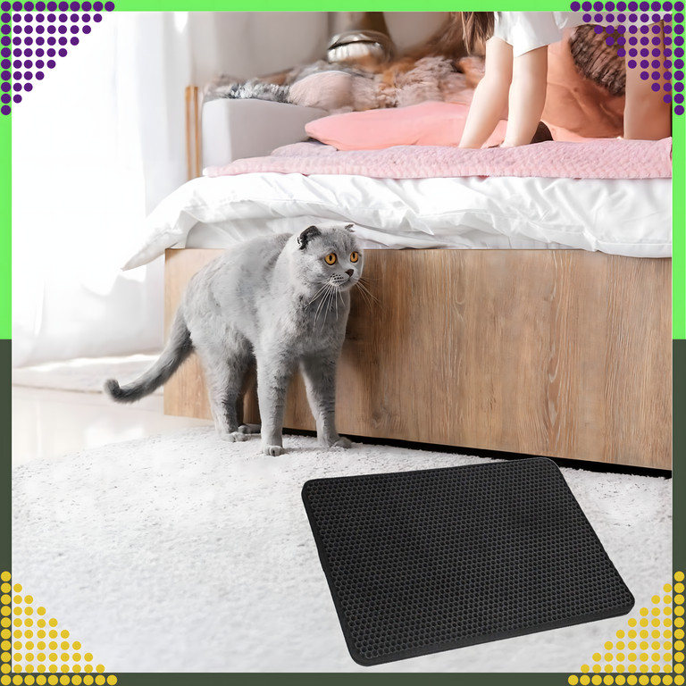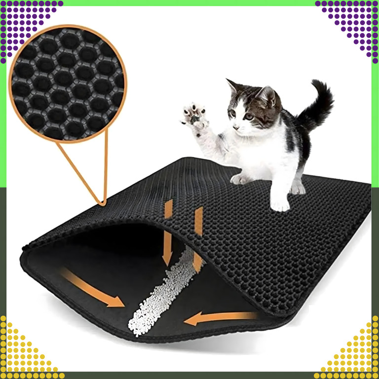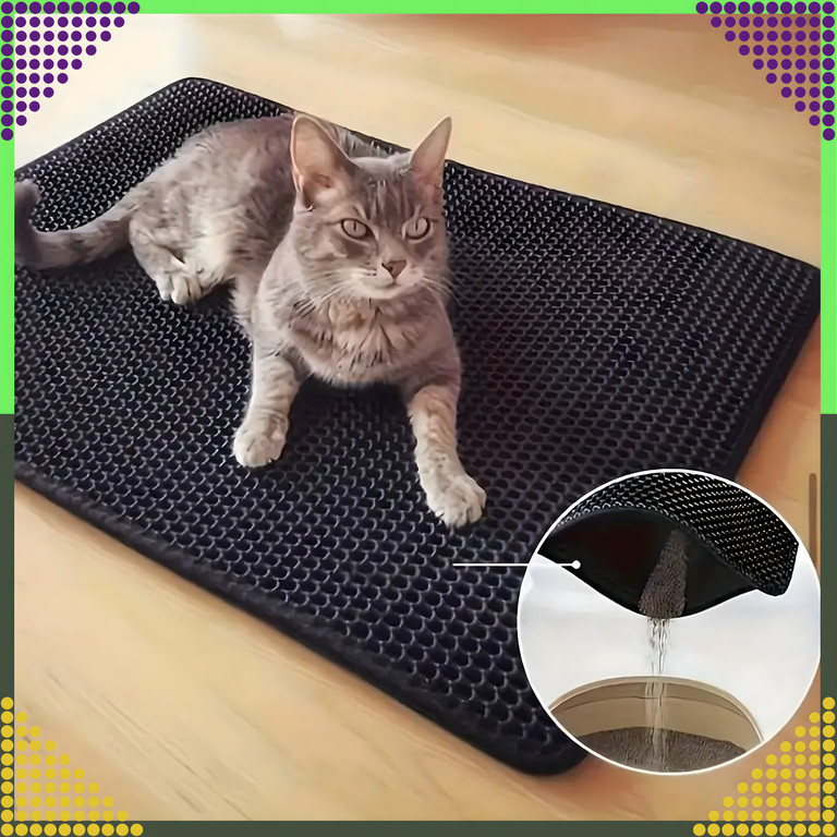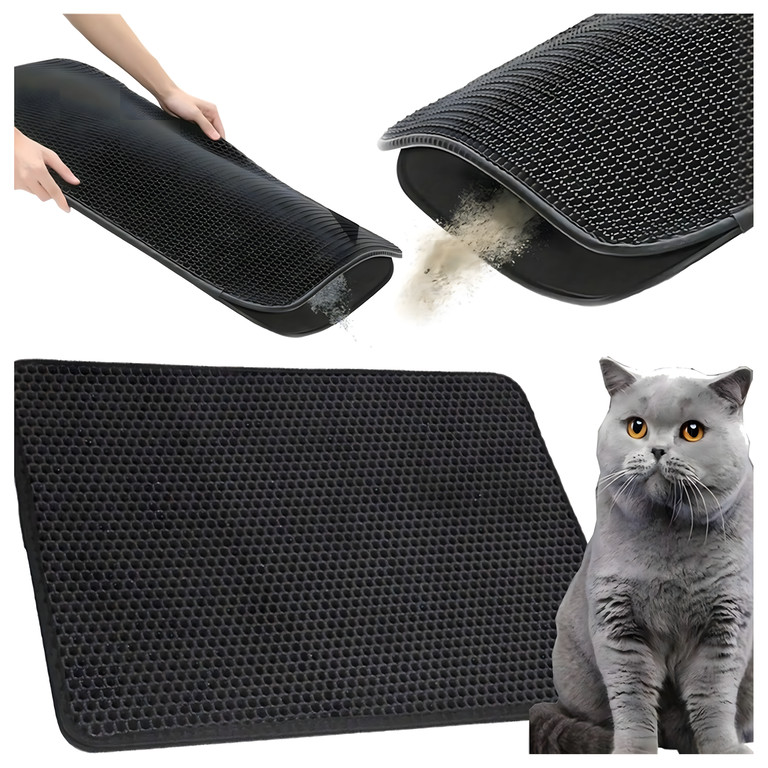 A kétrétegű higiénikus szőnyeg hatékonyan felfogja az almot, ami a macska mancsain marad, amikor elhagyja az alomdobozt. A gabonaszemcsék és egyéb törmelékek a lyukakon keresztül a szőnyeg belső rétegébe hullanak. Egyszerűen helyezze az alomdoboz mellé , hogy megakadályozza, hogy a macska szétszórja a piszkos almot az egész szobában.