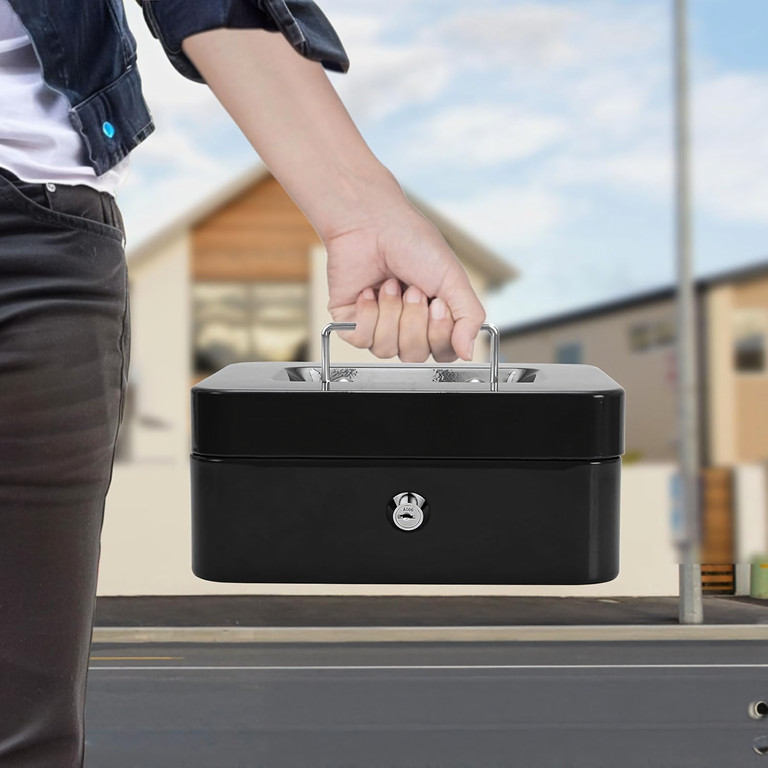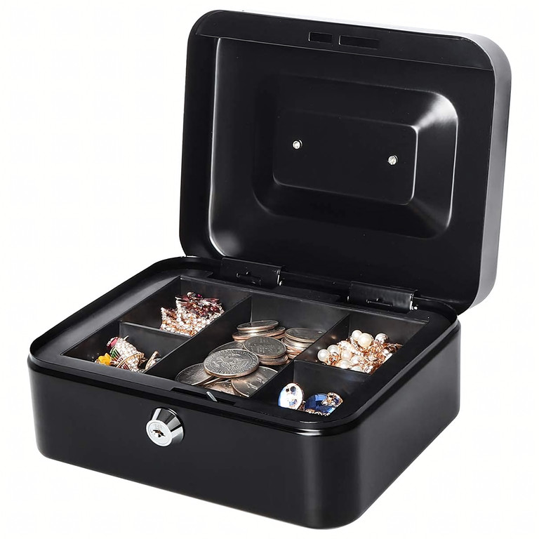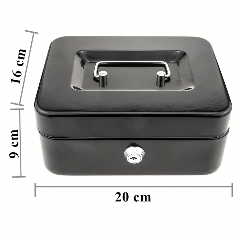 Ez a kulcszáras fémdoboz nagyszerű módja kisebb és nagyobb összegek, dokumentumok és egyéb apróságok tárolására. Rekeszekkel ellátott polccal rendelkezik az egyszerű érmeválogatás érdekében.