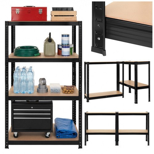 Minden polc erősítő támasztékkal van ellátva, amelyek növelik a szilárdságot és minimálisra csökkentik a megereszkedést még maximális terhelés esetén is. A polc könnyedén hordozhat felnivel ellátott gumiabroncsokat, szerszámokat, nehéz dobozokat vagy készleteket.