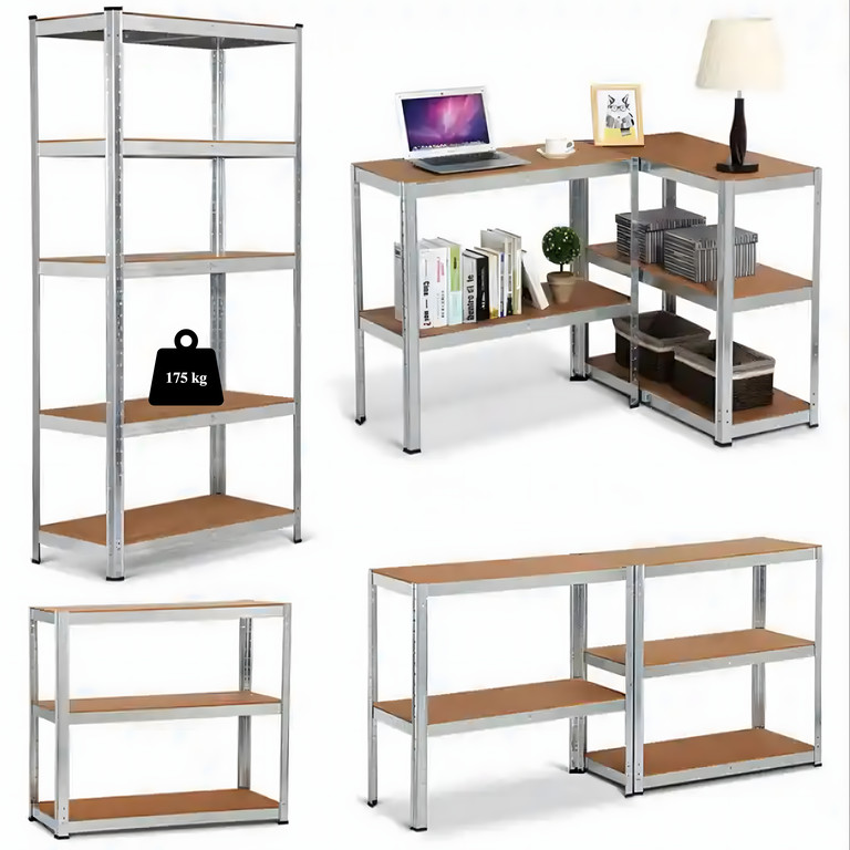 Az állvány kevés helyet foglal, de a polcoknak köszönhetően bőséges tárolóhelyet kínál. Az állvány öt polcból áll, amelyeken termékeket, dobozokat vagy háztartási gépeket rendezhet el, polconként maximálisan 175 kg terhelhetőséggel. A teljes állvány maximális teherbírása 875 kg. Állványunk további előnye, hogy két kisebb egységre osztható .