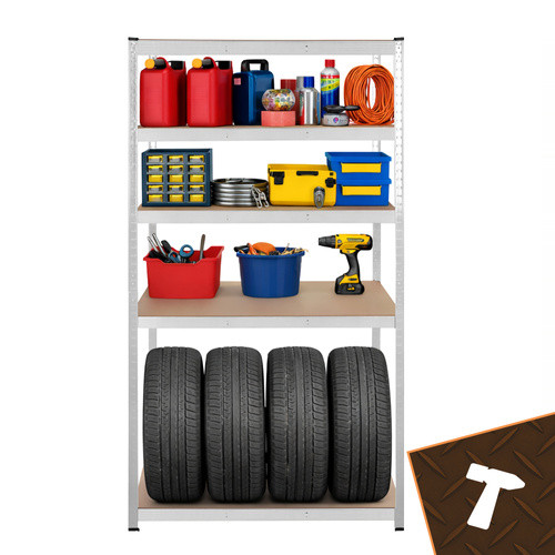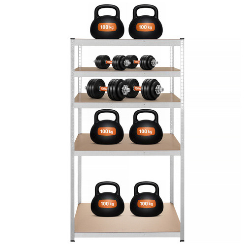Erős acél tárolóállvány 180x100x60 cm, 1 tonna teherbírással, Bigstreen, 5 MDF polccal megerősítve