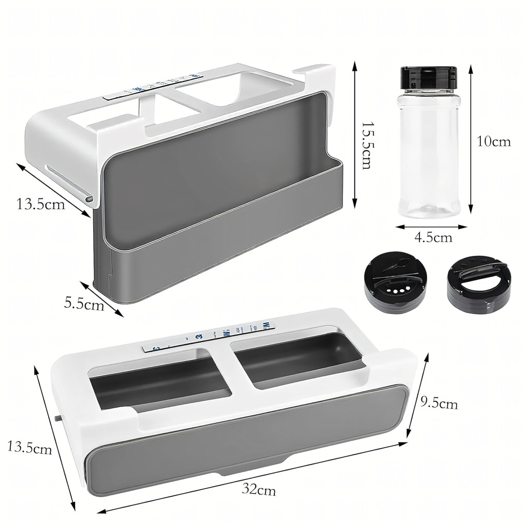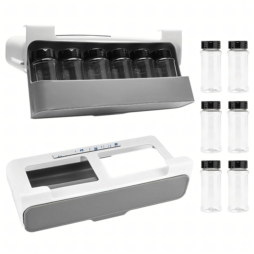 Praktikus konyhai szervező 6 átlátszó befőttesüveggel, fúrás nélkül rögzíthető 3M ragasztószalaggal. Helyet takarít meg, gyors hozzáférést biztosít a fűszerekhez, és a legtöbb szekrénybe illeszkedik. Tökéletes bármilyen konyhába!