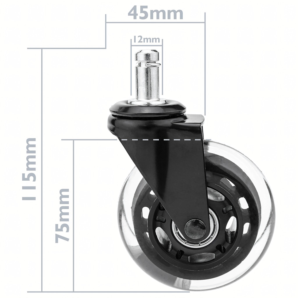 Tartósság, csendes működés és padlóvédelem egyben! A kiváló minőségű gumi kerekek univerzális megoldást jelentenek , amelyek jól működnek mind otthoni irodában, mind sokat használt gamer székekben. A legtöbb 12 mm-es tengelyű székhez illeszkednek.