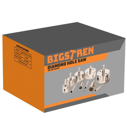 A készletben 10 lyukfúrót tartalmaz különböző méretben: 6, 8, 10, 16, 20, 28, 35, 45, 50 és 68 mm. Élességüknek és tartósságuknak köszönhetően a gyémánt lyukfúrók lehetővé teszik a pontos és sima furatok készítését például kerámiába, kőburkolólapokba elektromos, víz- és csatornabekötésekhez. A gyémántbevonatos lyukfúrók különböző hűtőfolyadékokkal is használhatók mint például a víz, ami segít fenntartani a szerszámok megfelelő hőmérsékletét fúrás közben, és meghosszabbítja élettartamukat. A hűtés különösen fontos lehet olyan műveleteknél, ahol hosszabb ideig folyamatos fúrásra van szükség. Úgy tervezték a terméket, hogy kis energia befektetéssel nagy hatékonyságot éjünk el a kemény anyagok fúrásában, ez idő- és fáradságmegtakarítást jelent az építési és felújítási munkák során. Termék jellemzők: Méretek: 6, 8, 10, 16, 20, 28, 35, 45, 50 és 68 mm-es méretben. Befogatás: hengeres szár Száraz és nedves munkához A készlet súlya: 420g A készlet tartalma: 10 db körkivágó (lyukfúró)