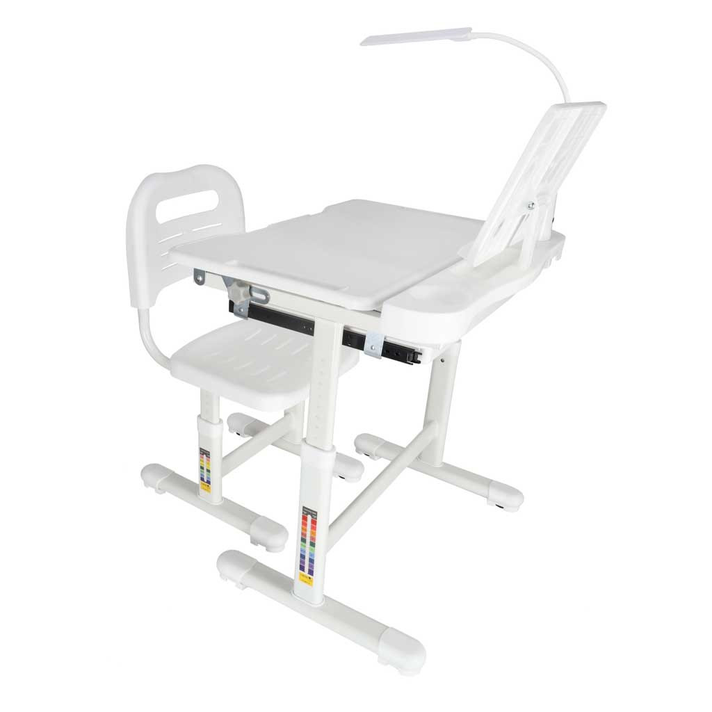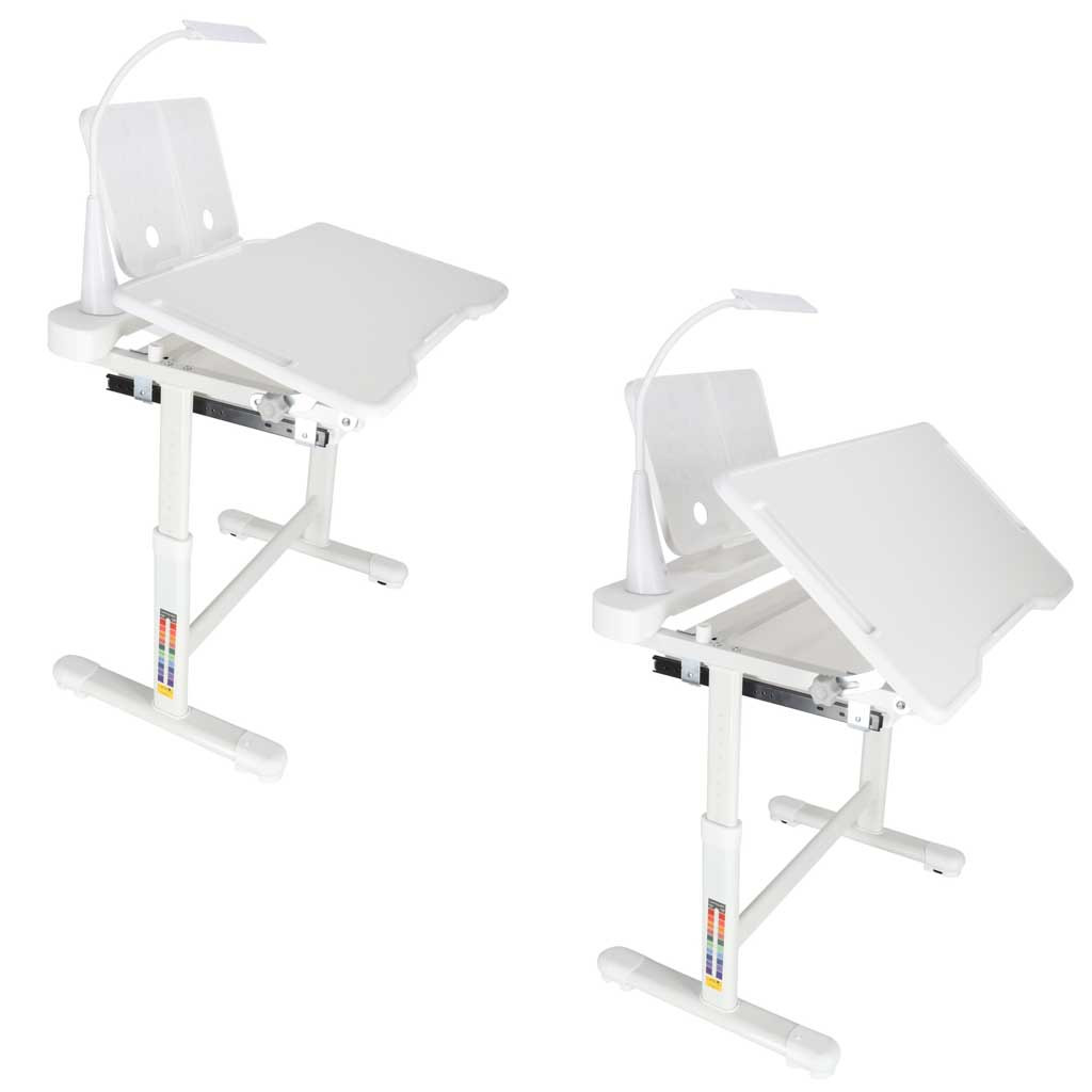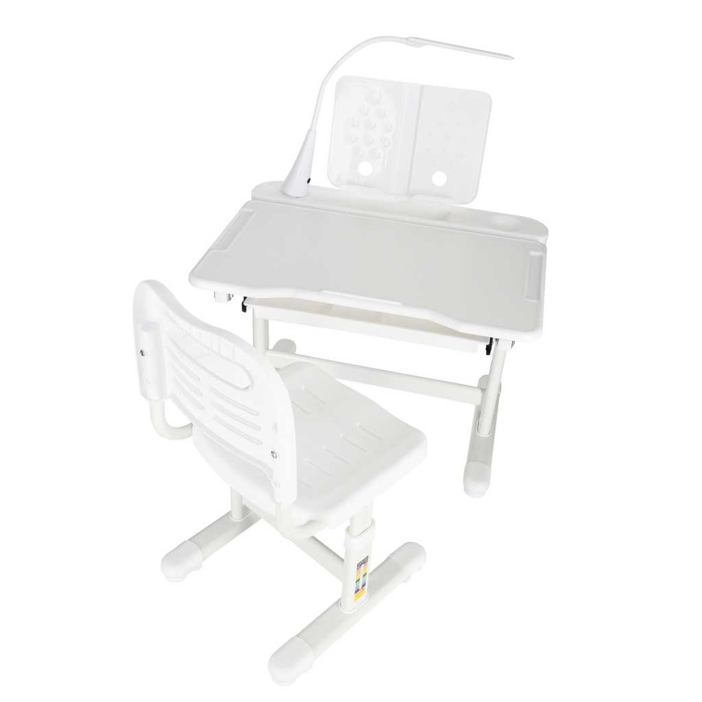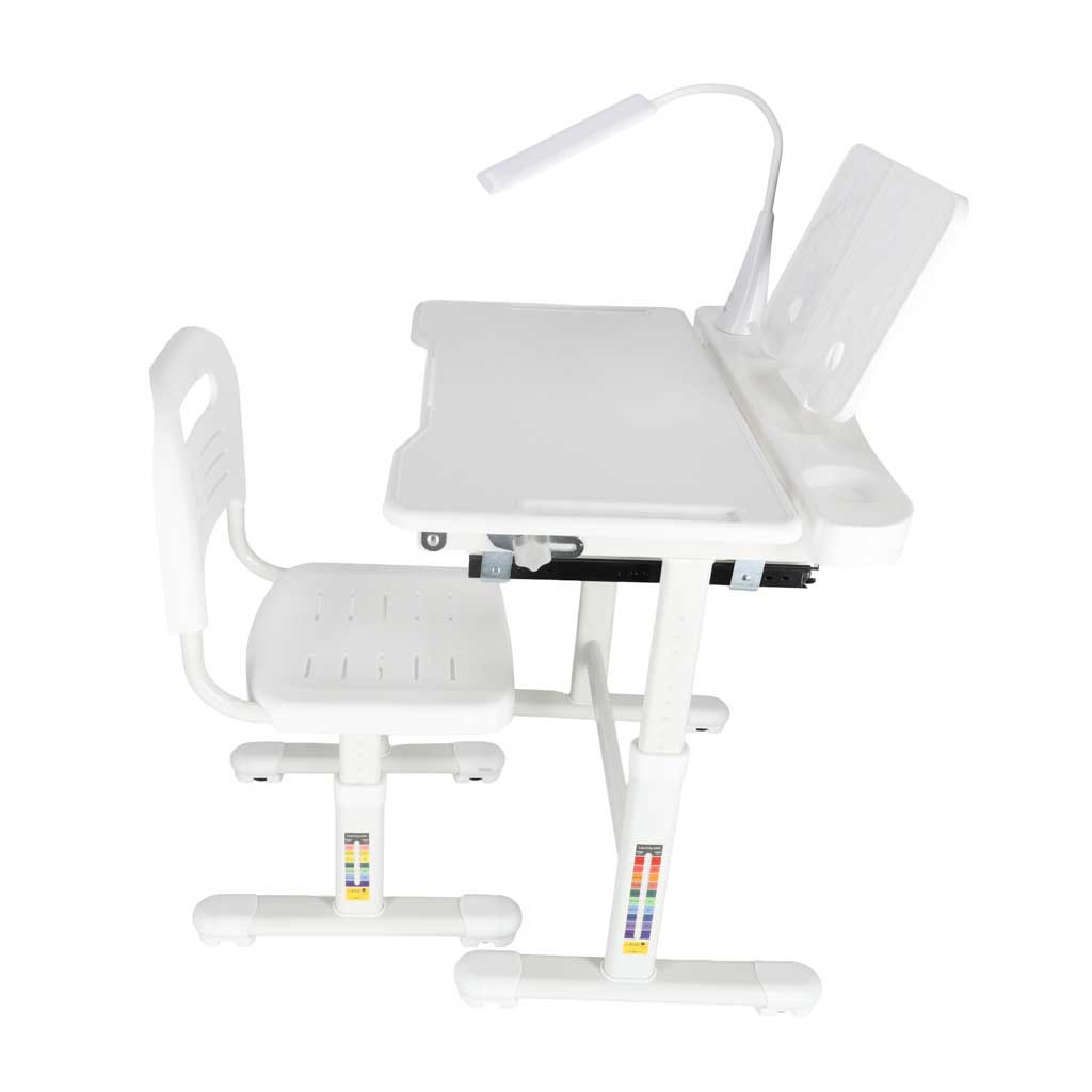 ERGONÓMIKUS ÍRÓASZTAL MAGASSÁGÁLLÍTÁSSAL, SZÉKKEL ÉS LED LÁMPÁVAL (FEHÉR) - MODERN ÍRÓASZTAL GYEREKEKNEK