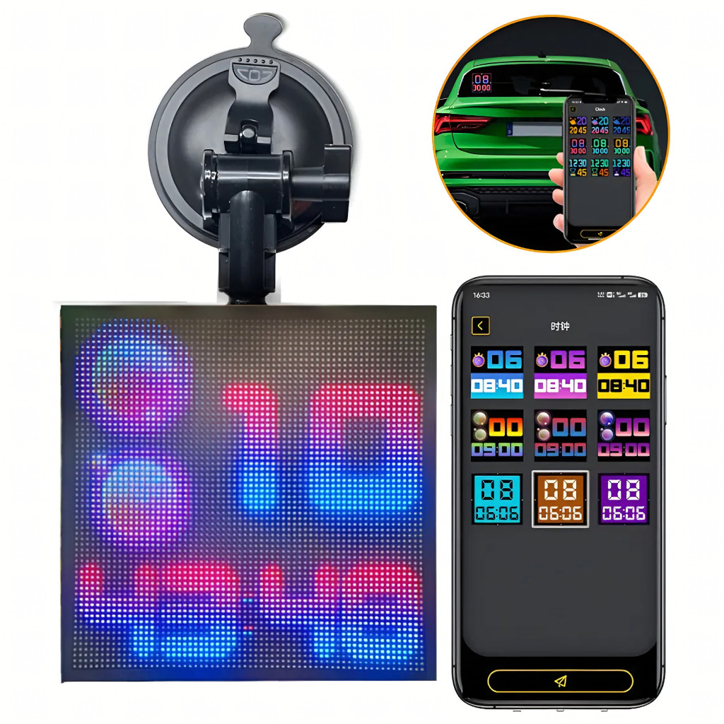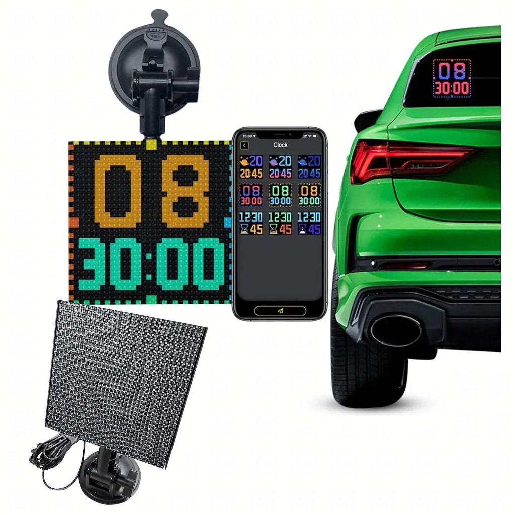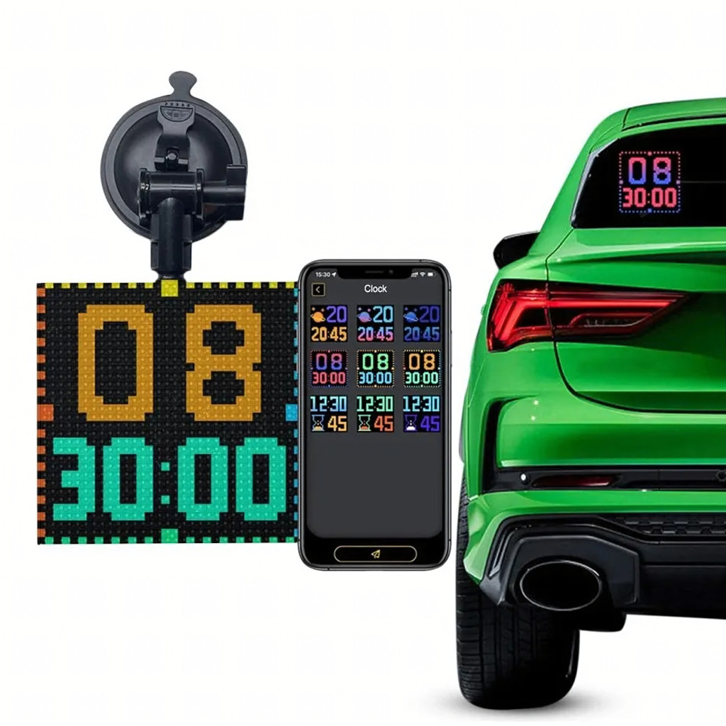 Teljesen színes LED kijelző – modern, teljes színű, 32x32 pixeles LED kijelző, amely az autó hátsó ablakára szerelhető. Bluetooth-on keresztül vezérelhető az iPixel Color alkalmazással (Android/iOS) , lehetővé téve saját animációk, szövegek és hangulatjelek létrehozását. Tökéletes autókba, taxikhoz, otthonokba vagy irodákba. A 12 V-os USB tápellátás, az egyszerű tapadókorongos rögzítés és a beépített RGB LED-ek garantálják a fényes és lenyűgöző fényjátékot.