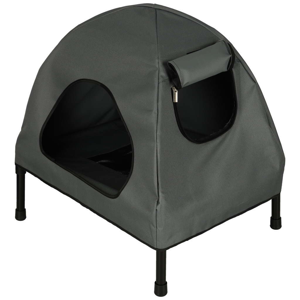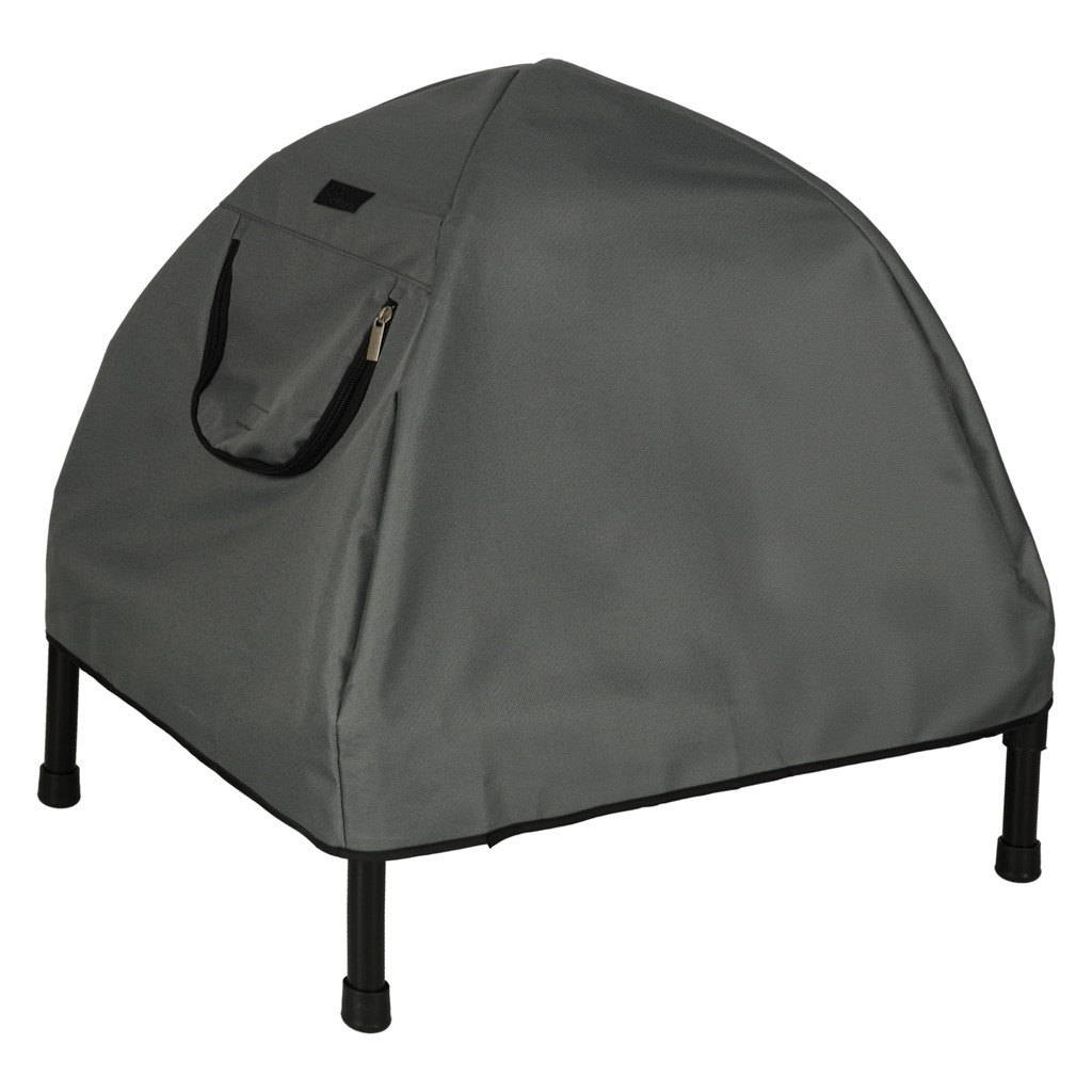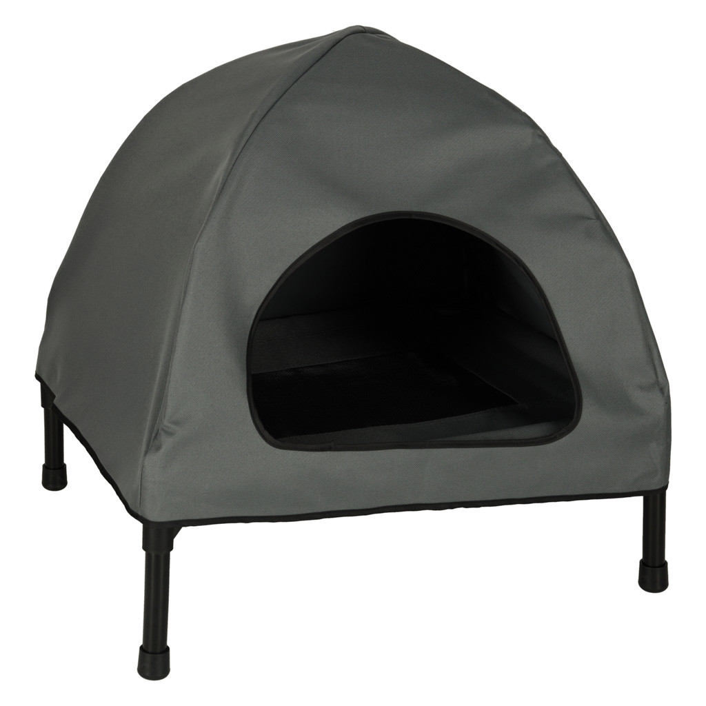Ez a kutya- vagy macskafekhely könnyen összeszerelhető, így néhány pillanat alatt, szerszámok nélkül is beállítható. Egy könnyű, textil sátor helyezhető a fekhely fölé , amely kényelmes menedéket teremt , megvédve kedvencét a huzattól, a fénytől és a széltől. A tetőszerkezetet rugalmas drótok tartják , amelyek biztonságosan tartják az egész szerkezetet, és szükség esetén könnyen eltávolíthatók. Ezenkívül a levehető tető és az összecsukható kialakítás hihetetlenül kényelmessé teszi a fekhelyet a mindennapi használatra, tárolásra és szállításra.