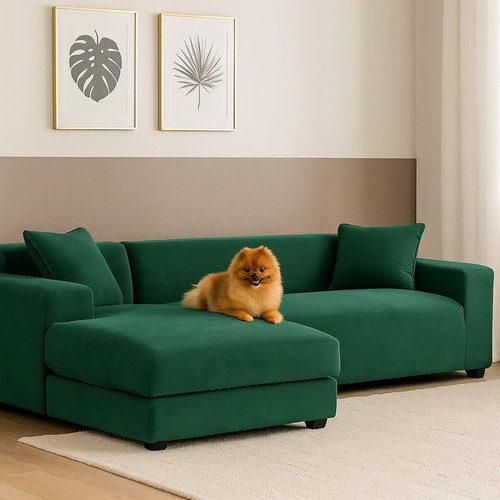 RUHHY sarokkanapé huzat – üvegzöld rugalmas bársony 190 - 230 cm