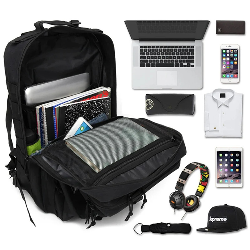 Katonai taktikai hátizsák, 45 L, fekete, 50x33x30 cm