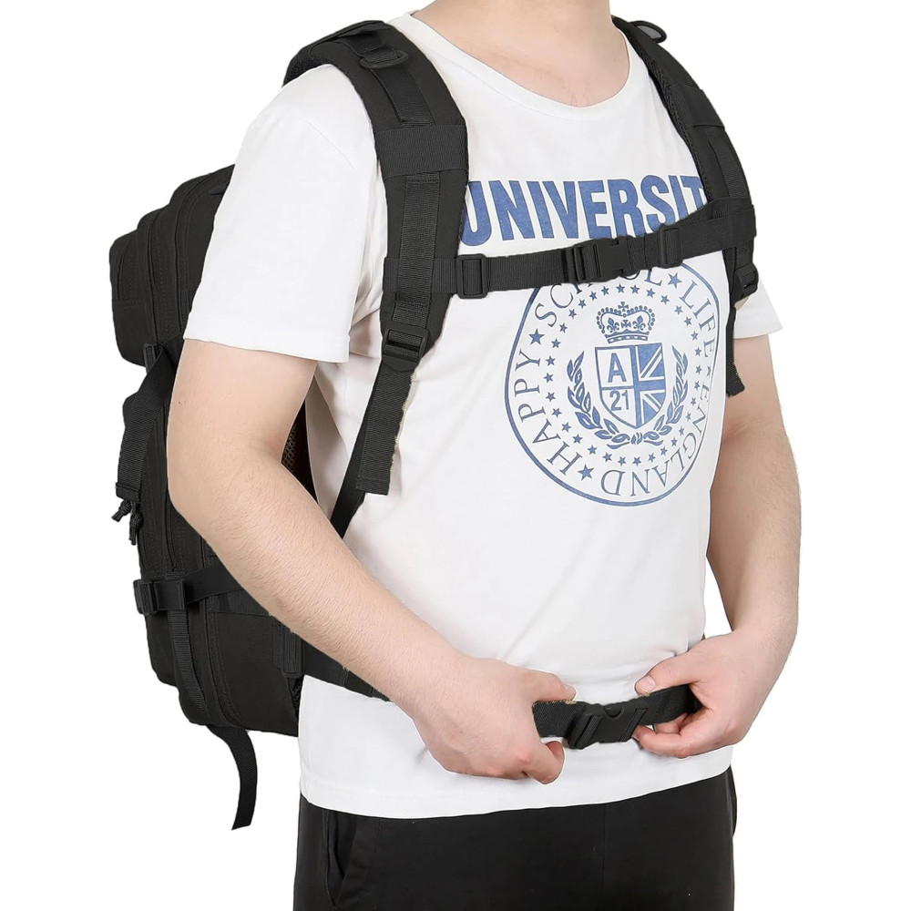 Tágas taktikai hátizsák 600D poliészterből. Űrtartalom 45 liter . A szalagoknak köszönhetően további felszereléseket is rögzíthet. A fő rekeszben van egy zseb egy laptop vagy hidratáló rendszer számára. Az elülső zseb cipzárral záródik. Az oldalán szimmetrikusan tasakok találhatók. A 45 literes taktikai katonai hátizsák egy modern modell könnyű moduláris rendszerrel. Erős 600D poliészterből készült, kopás- és szakadásálló. Belsejében vízálló PVC bélés található a fokozott esővédelem érdekében. A varrás tartós polipropilén cérnával történik. TÖKÉLETES VÁLASZTÁS MINDENKINEK. VÍZÁLLÓ - poliészter anyag gumírozott belsővel megfelelő védelmet nyújt. SZELLŐZŐRENDSZER - hát és heveder. ÁLLÍTHATÓ HORDOZÓRENDSZER - egyedi igényekhez igazítva. CSÍPŐÖV - tehermentesíti a gerincet és a vállakat használat közben. HORDOZÓ FOGANYTÚ - a hátizsák felső részén. BIZTONSÁG CSATOK FORMÁBAN - a hátizsák tartalma nagyon védett. HABBETÉT - növeli a kényelmet a hátizsák használatakor. 2 FŐ REKESZ - nagyon tágas. NAGY DESIGN - és univerzális színek. Funkcionális és megbízható, rekeszekkel és zsebekkel felszerelt, cipzárral zárható, ideális hátizsák univerzális használatra: városi, túlélési, katonai és turizmushoz. TÖKÉLETES SZÓ SZERINT MINDENHOL: Hegyi expedíción. A kempingbe. Erdei ösvényeken való kiránduláson. Turisztikai kiránduláshoz. Ünnepi poggyászként. Vitorlázás közben. Méretéből adódóan kézipoggyásznak is használható. A legfontosabb jellemzők: Csípőöv. Amely leválasztható - lehetővé teszi a gerinc és a vállak tehermentesítését hátizsák viselésekor - a teljes súly a csípőre összpontosul. Kompenzációs övek. Lehetővé teszik, hogy a hátizsákot a szállított teher méretéhez igazítsa. A hátizsák pántjainak lerövidítése lehetővé teszi, hogy lelapítsa, pl. amikor a fő rekesz gyakorlatilag üres, és csak a kisebb zsebek vannak tele. Az állítható pántok hasznosak lehetnek felszerelések rögzítésekor is, pl. Kényelmes nadrágtartó. Tökéletes illeszkedés az alakhoz és nagyobb kényelem hosszú túrák során is. Szilárd és praktikus kidolgozás. Egy univerzális katonai stílusú, magas taktikai funkcionalitású hátizsák masszív, kopásálló anyagból készült , és dupla, mélyen levehető cipzárral, csípőövvel és kompenzációs övekkel rendelkezik. Mindez nem csak kényelmessé, hanem praktikussá és elnyűhetetlenné teszi a hátizsákot. Paraméterek: Anyaga: 600D poliészter. Űrtartalom: 45 l. A belseje vízálló bevonattal van bevonva. 3 fő rekesszel, kétirányú cipzárral zárva. Elülső zseb, kétirányú cipzárral záródik. Hátsó zseb az ivóvíz szállító rendszernek. Belső zsebek. Szellőző hát- és vállpántok. Kompressziós pántok. Csípőöv. Bőrönd fogantyúja. Molle rendszerű szalagok. Tépőzáras panel. Fastex csatok és D-gyűrűk. Katonai minta. Funkcionális és univerzális. Kiváló minőség és tartósság. Sok praktikus rekesszel és zsebbel. Kényelmes, mélyen nyíló cipzárak. Kiegészítő felszerelés rögzítésének lehetősége. Méretek (Ma x Sz x Mé): 50 x 33 x 30 cm. Súly: 1600 g. Szín: fekete.