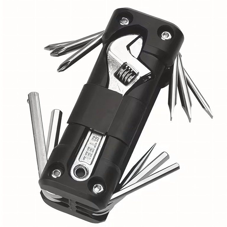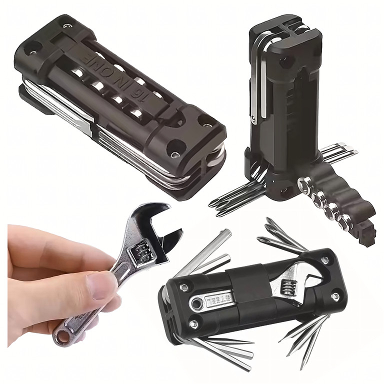 A 13 az 1-ben multiszerszám-javítókészlet egy kompakt, multifunkcionális eszköz , amely egy teljes szerszámosládát helyettesít. Tökéletes otthoni, autós, kempingezési vagy kerékpáros használatra – mindig kéznél van, ha gyors javításra van szükséged!