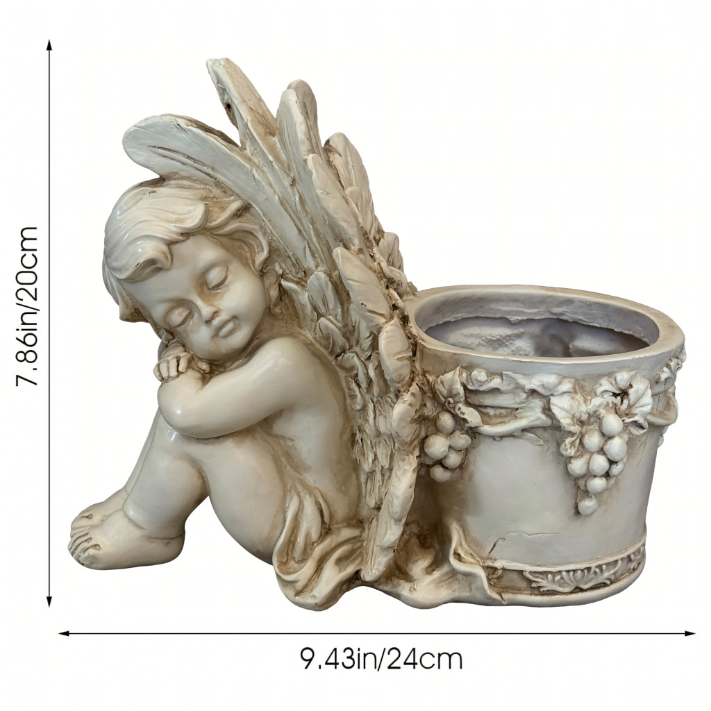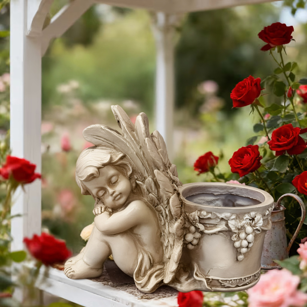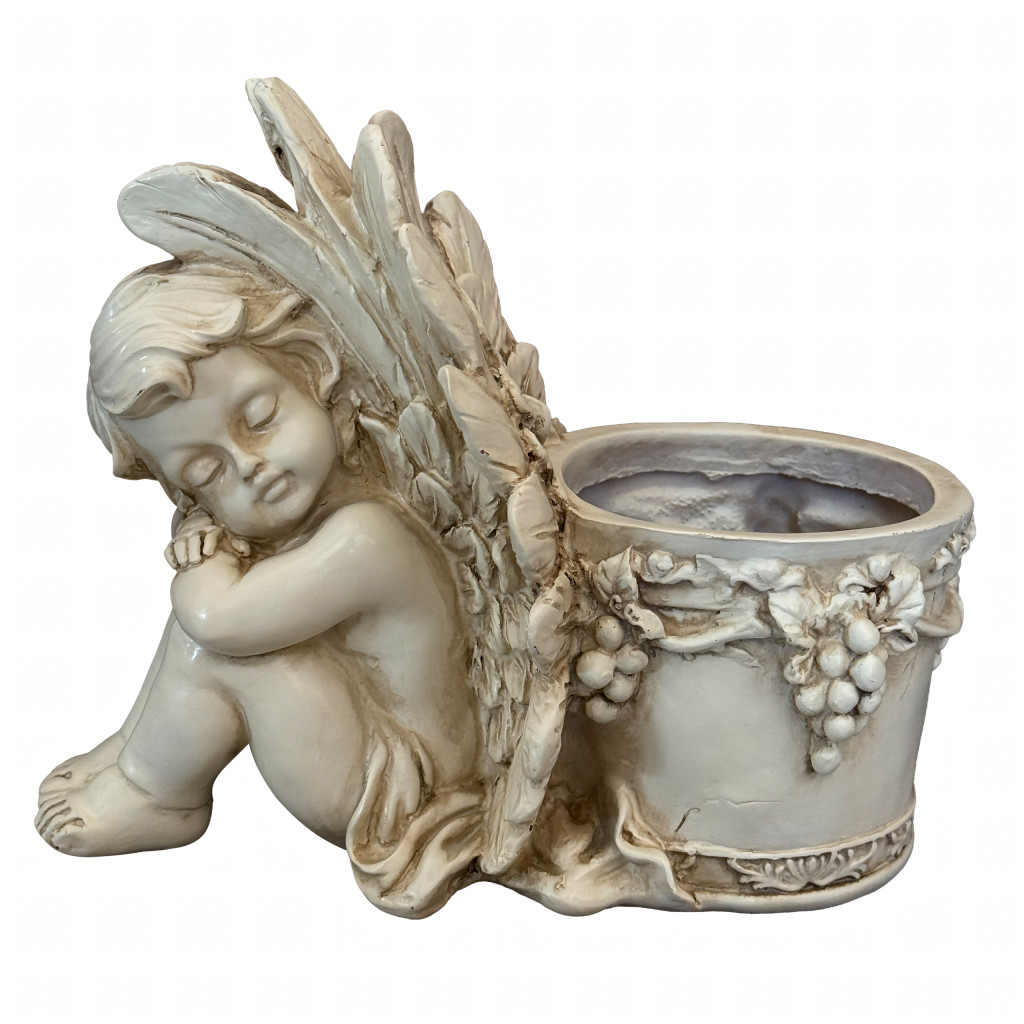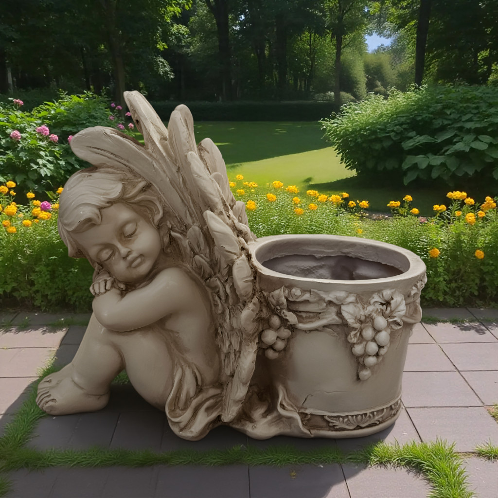 Egyedi dizájn – a bájos angyal szobor ötvözi a virágcserép és a dekoráció funkcióját, így bármilyen térbe bájt kölcsönöz.