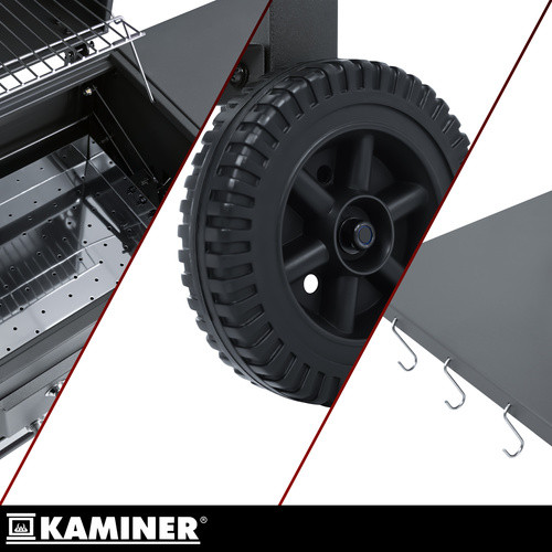 Elege van a szezon után billegő, gyorsan lekopó festékkel borított és a hőmérsékletet nem tartó grillekből? KAMINER Ez egy masszív grillsütő, elpusztíthatatlan öntöttvas ráccsal, 1 mm vastag lemezzel, hőmérős fedéllel és állítható tűztér-magassággal, ami megkönnyíti a tökéletes átsütés elérését . Praktikus kiegészítőket és egy fedelet is kap, hogy a grillsütő készen álljon a következő kerti összejövetelre.