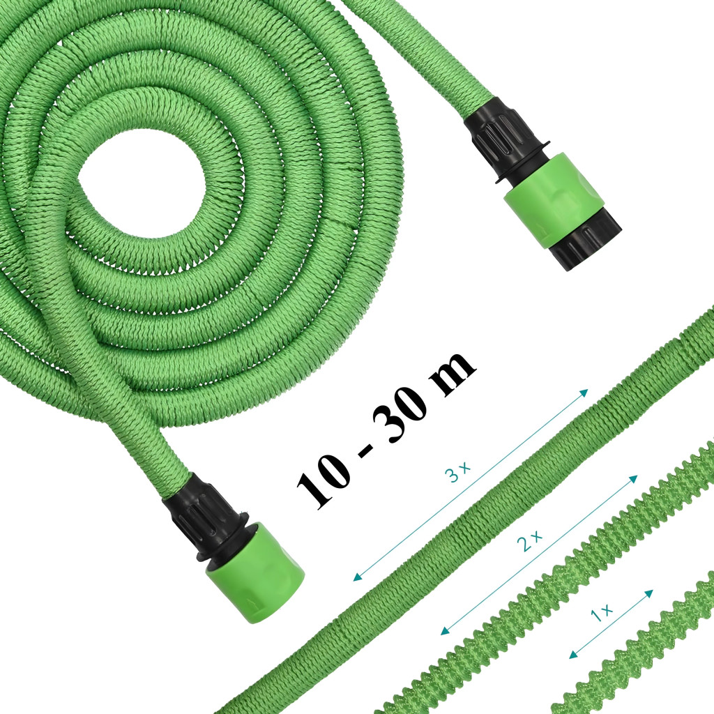 ️ Állítható hosszúság – a tömlő 10 m-től 30 m-ig húzható, így rugalmasságot biztosít, és lehetővé teszi a kert nehezen elérhető helyeinek elérését.