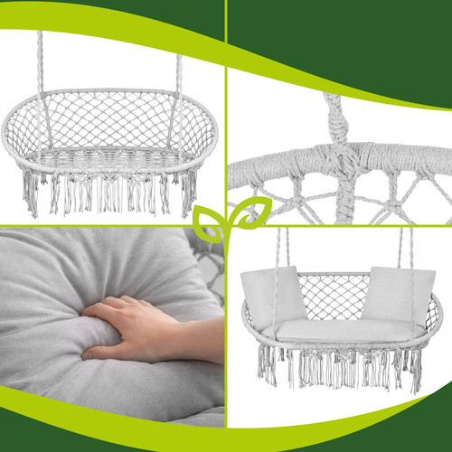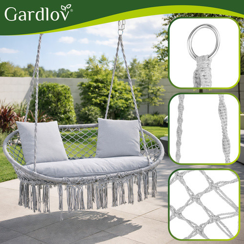 Gardlov dupla szürke gólyafészek hinta - 300 kg-os kétszemélyes függőszék + 3 párna, kikapcsolódás az egész családnak