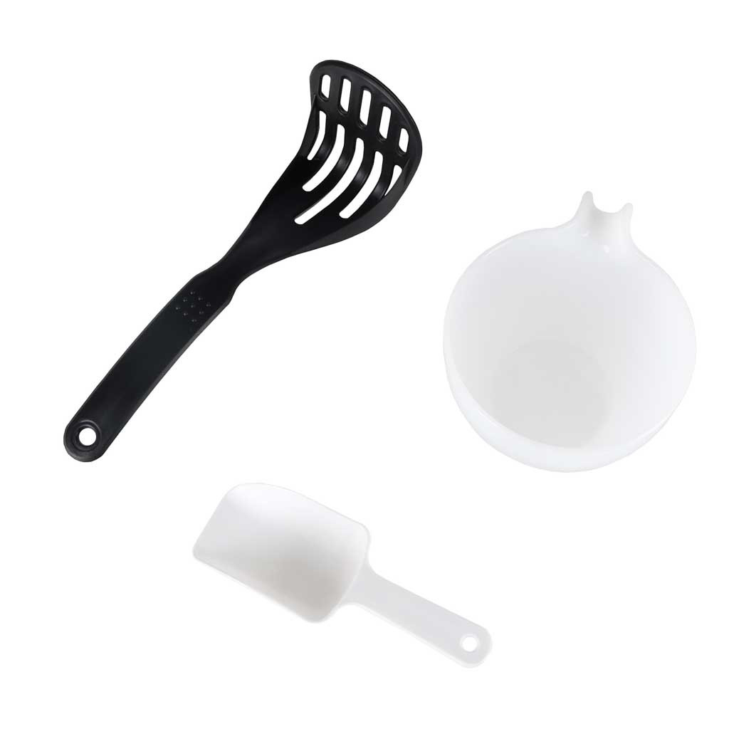 - Praktikus tartozékok – az otthoni komposztáló készlet olyan funkcionális eszközöket tartalmaz, mint a biohulladék tömörítéséhez szükséges habverő és a kényelmes felvitelhez és keveréshez szükséges kanalat, valamint egyéb eszközöket.