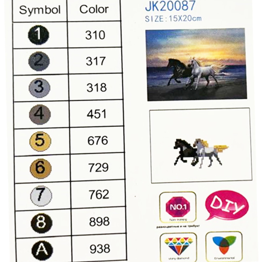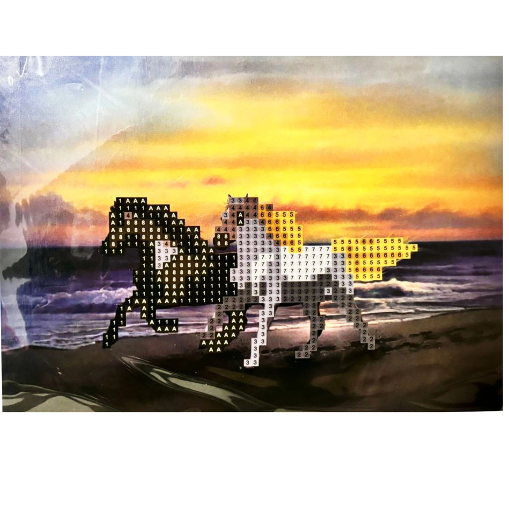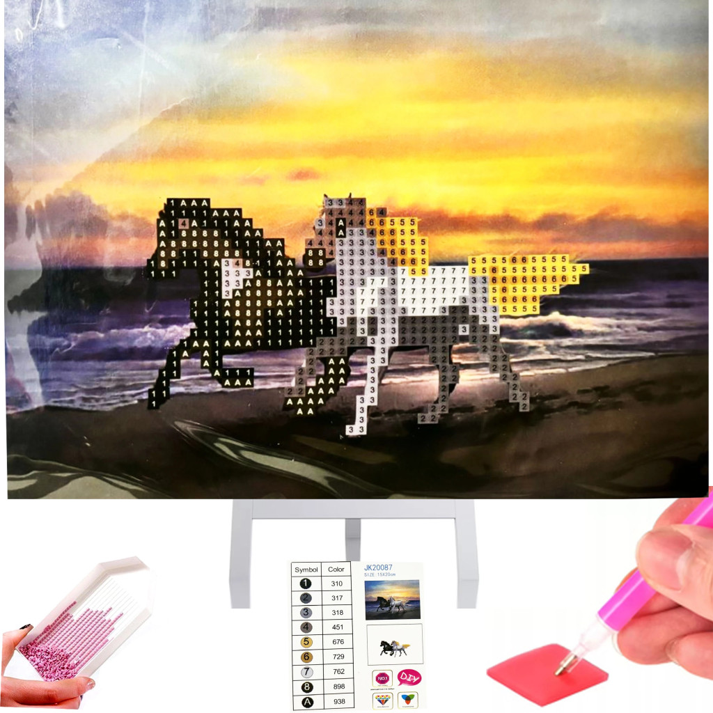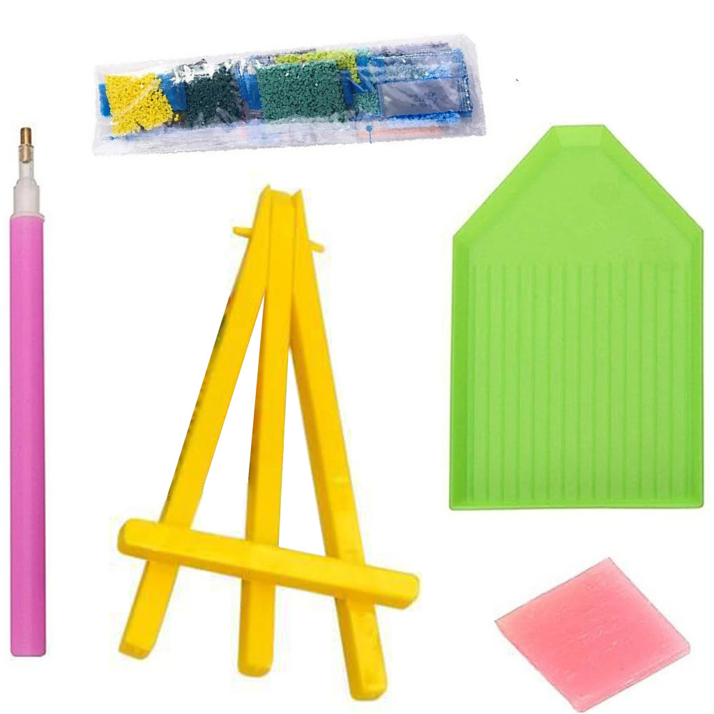 Egy komplett "csináld magad" mozaikkészlet. Tartalmazza az összes szükséges elemet a kép saját kezű összeállításához.