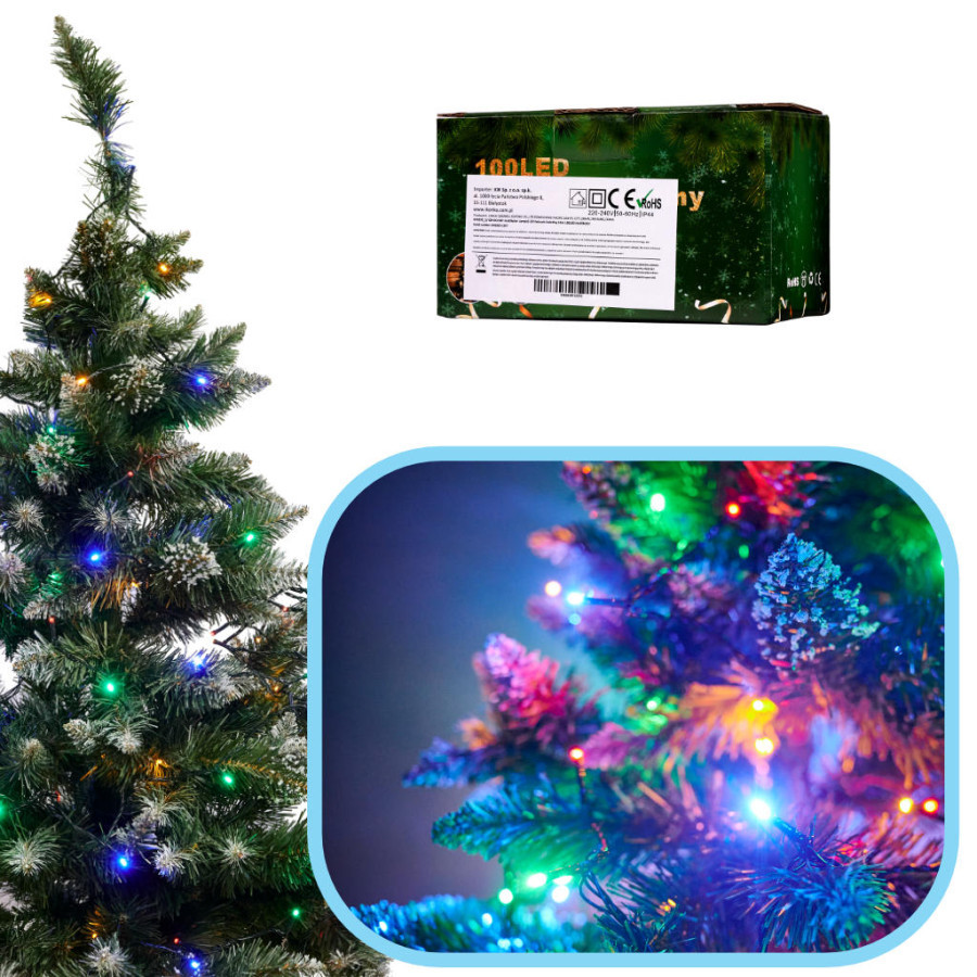 PARAMÉTEREK: Tápegység: hálózati Módok: 8 világítási mód Lámpa színe: több színű A lámpák száma: 100LED Csatlakozó második lánc csatlakoztatásához: van MÉRETEK: A lámpák hossza (tápkábel nélkül): 10 m Fények közötti távolság: kb. 9,5 cm A tápkábel hossza: 1,95 cm Teljes hossz: 11,95 cm Csomagolás: 14 cm x 7 cm x 8 cm.