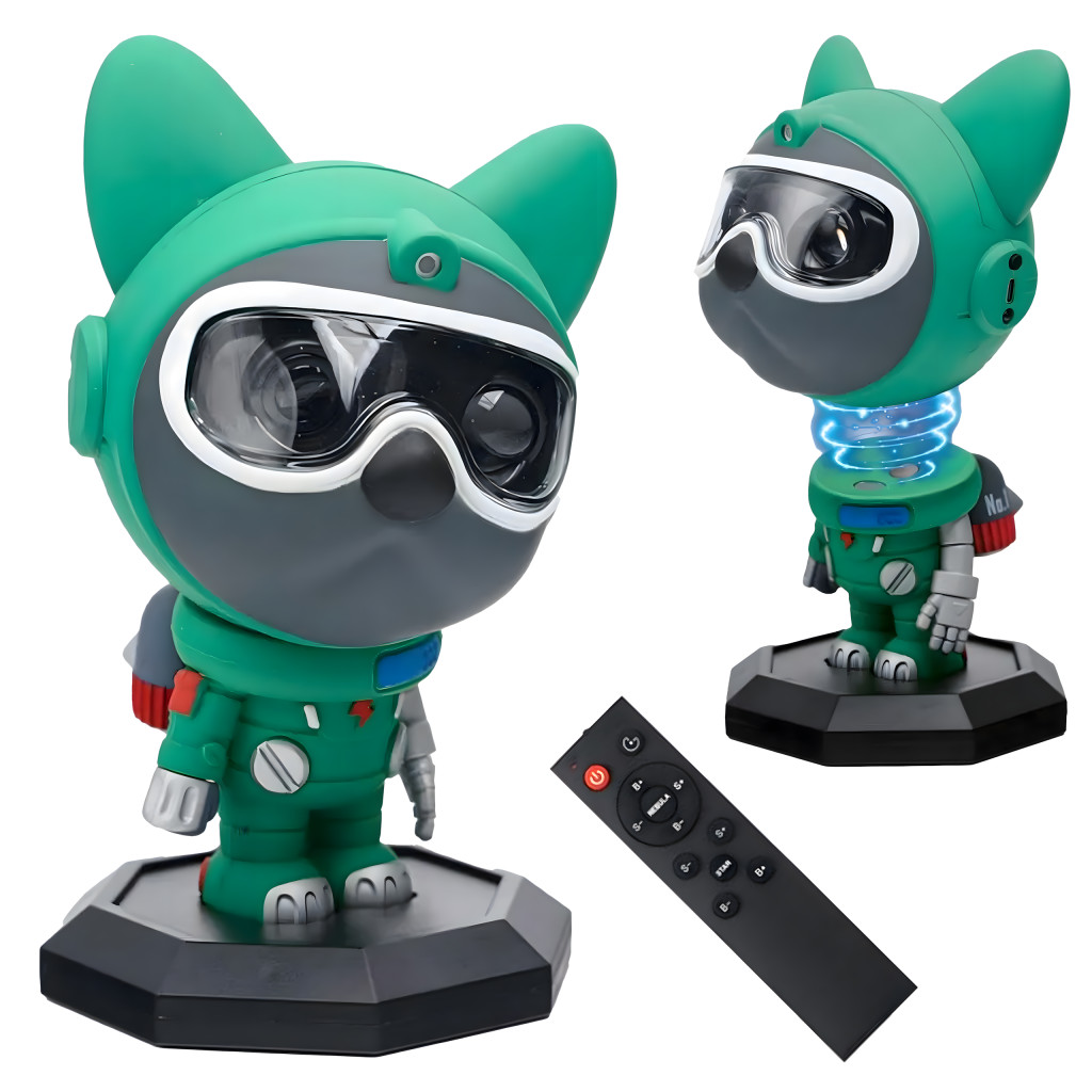 A Space Patrol egy innovatív csillagprojektor egy imádnivaló űrhajós kutya formájában, amely bármilyen szobát varázslatos planetáriummá varázsol. 360°-ban forgó vetítéssel, színes ködökkel és valósághű csillagokkal kozmikus hangulatot és oktató jellegű szórakozást visz a gyerekszobába . Távirányítóval, időzítővel és távirányítós fényerő-szabályozással felszerelve nemcsak dekoratív elem, hanem éjszakai fény és relaxációs eszköz is egyben.