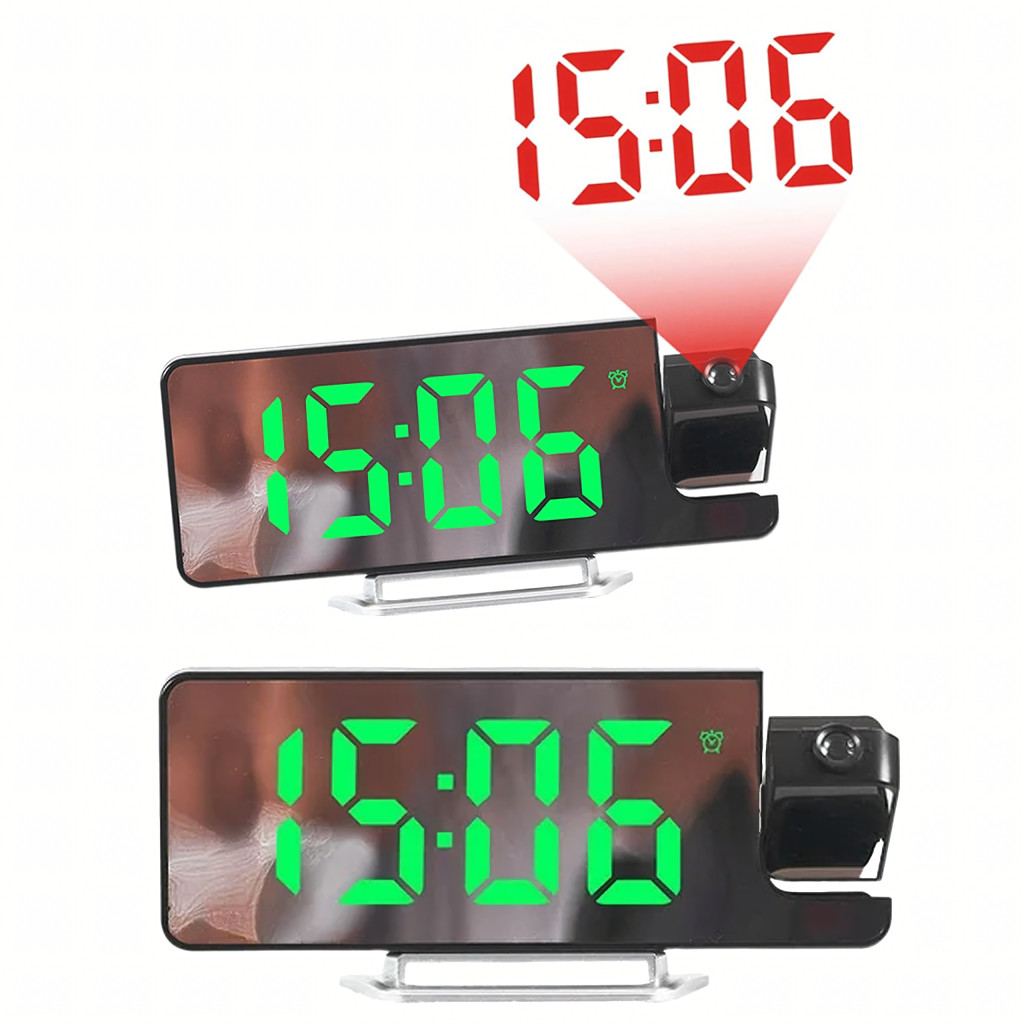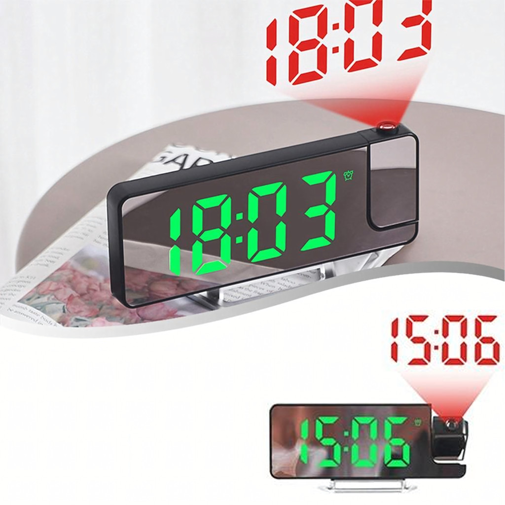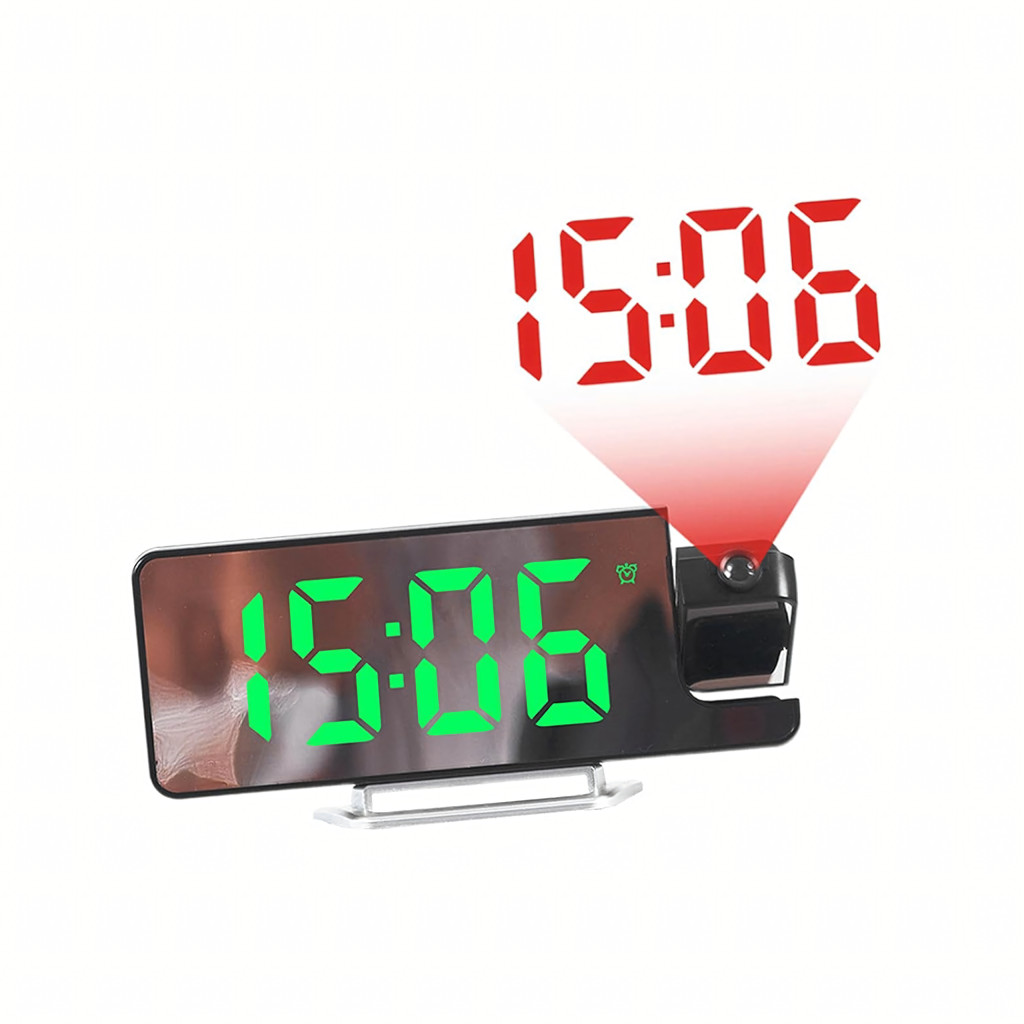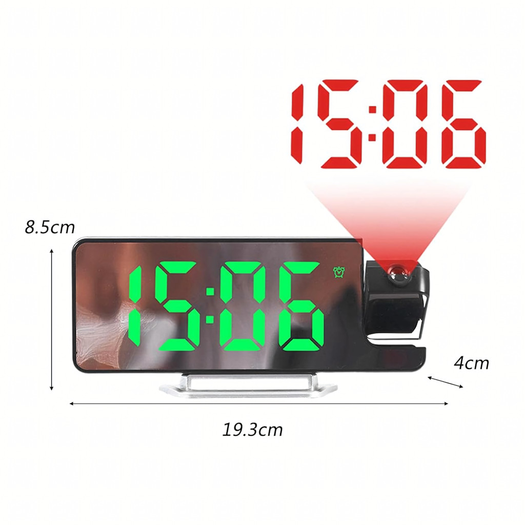 Modern LED óra projektorral – jól láthatóan kivetíti az időt falra vagy mennyezetre, beépített hőmérséklet-érzékelővel, szundi funkcióval ellátott ébresztővel és állítható vetítési szöggel. Egyetlen kijelzőn jeleníti meg a dátumot, az időt és a hőmérsékletet – tökéletes hálószobába, irodába vagy ajándékba.