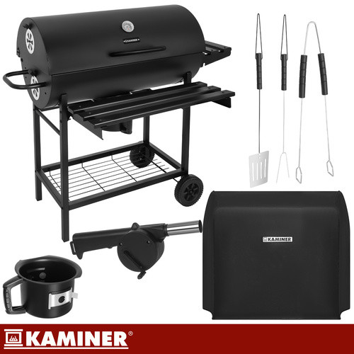 Kaminer faszenes kerti grill fedéllel, hőmérővel, 2 ráccsal, fedéllel és tartozékokkal