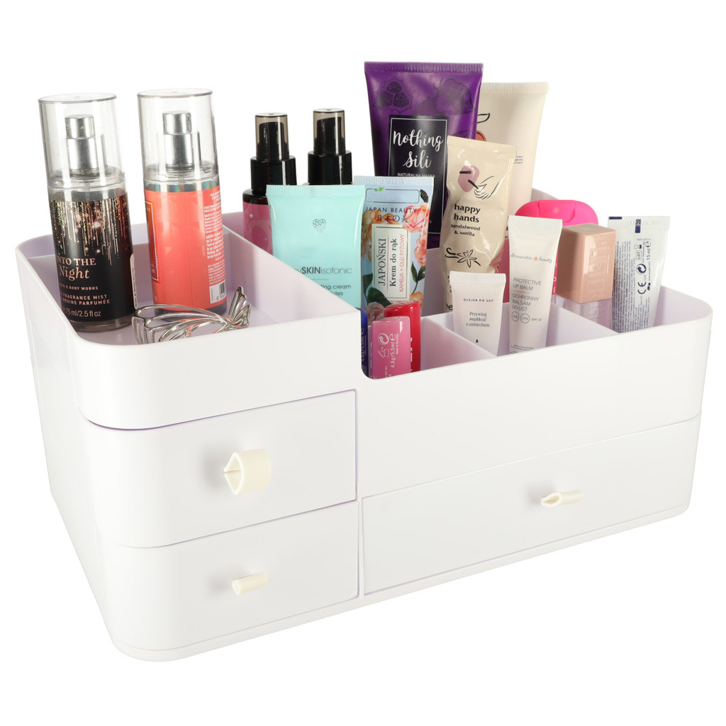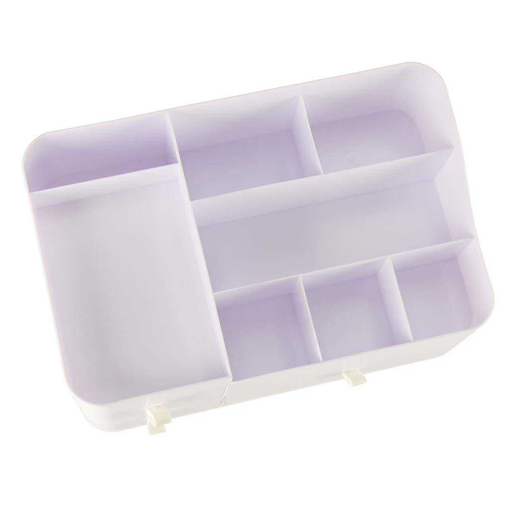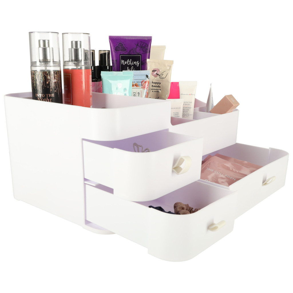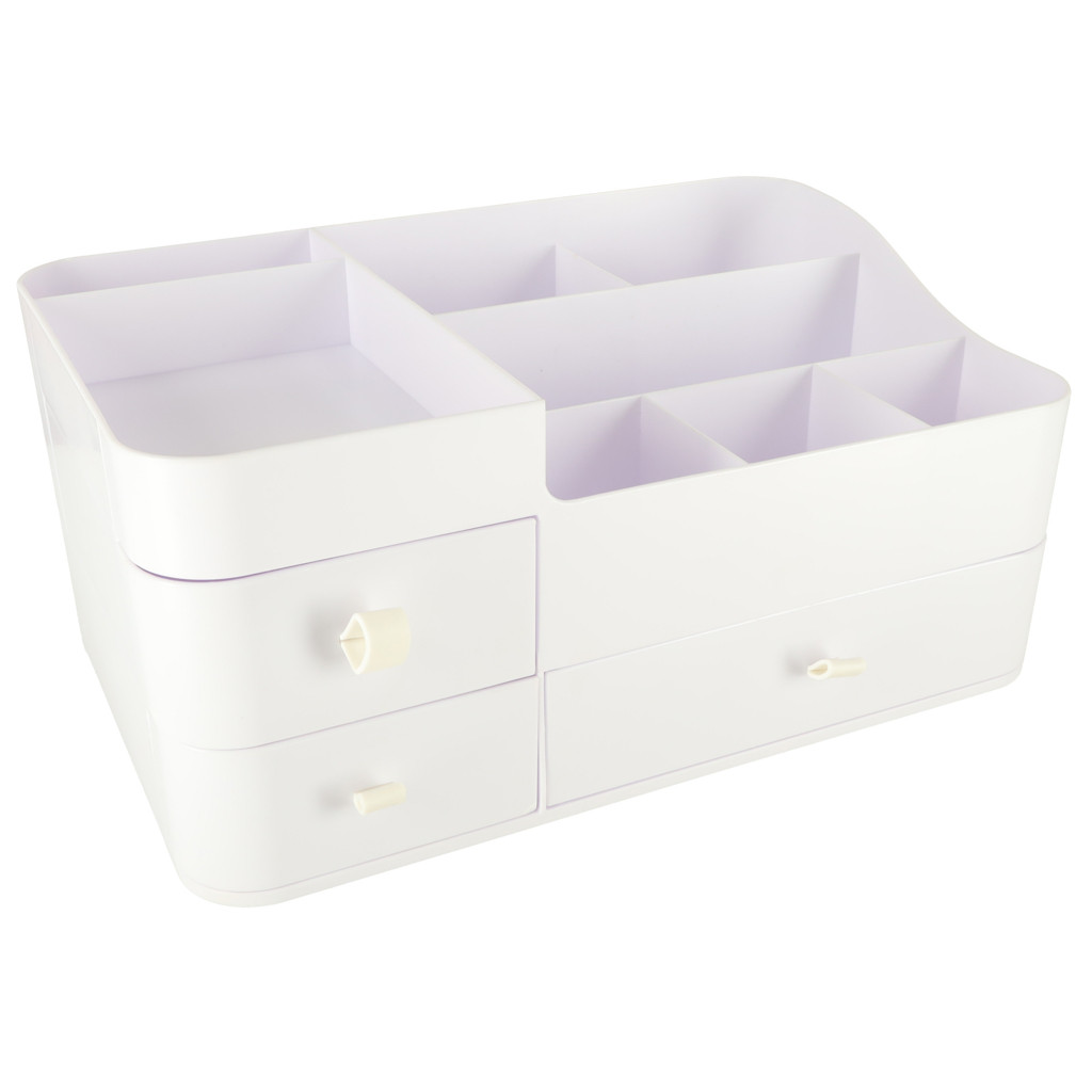 A fehér kozmetikai rendszerezővel könnyedén rendszerezheted a dolgokat. Három kihúzható fiókkal és hét rekesszel rendelkezik a kozmetikumok és egyéb kiegészítők elkülönítéséhez. A fehér szín tökéletesen illeszkedik bármilyen enteriőrbe. Kompakt méretének (34 x 22 x 15 cm) köszönhetően nem foglal sok helyet.