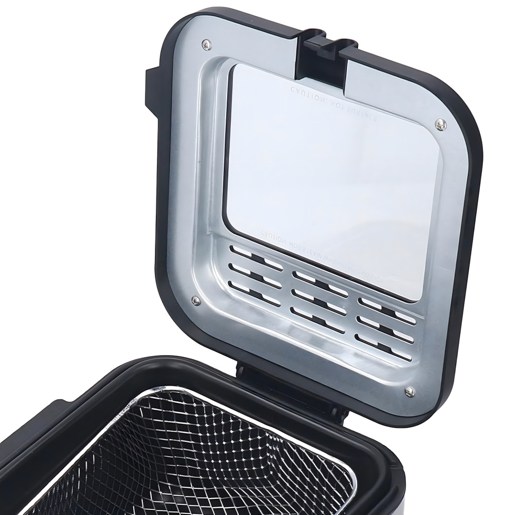 PRÉMIUM 2,5 L-ES ROZSDAMENTES ACÉL OLAJSÜTŐ ÁLLÍTHATÓ TERMOSZTÁTTAL + KÉMLŐABLAKKAL
