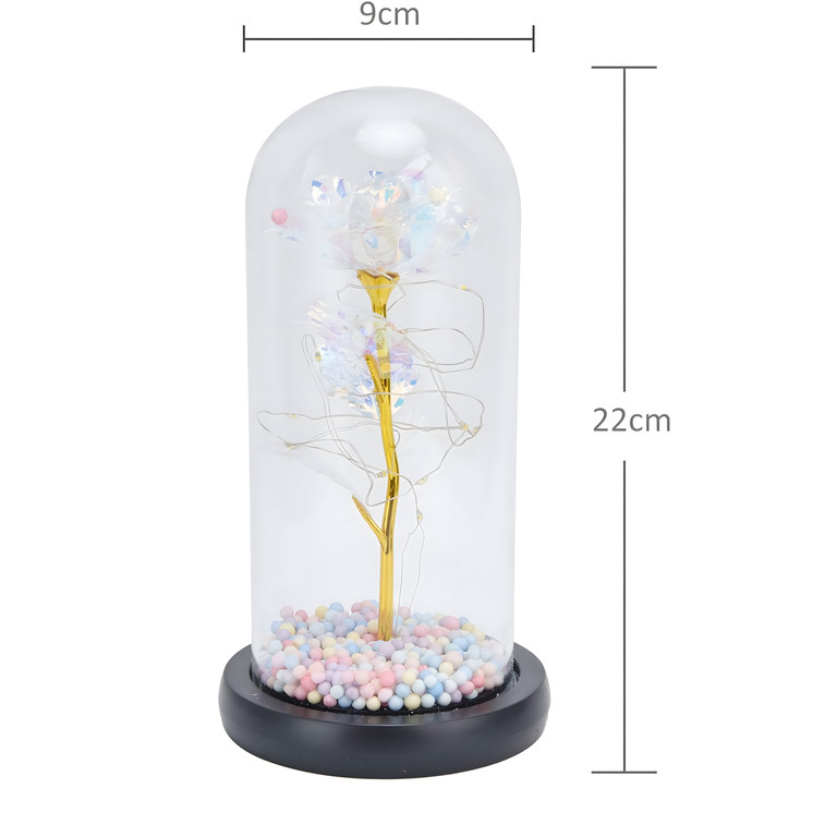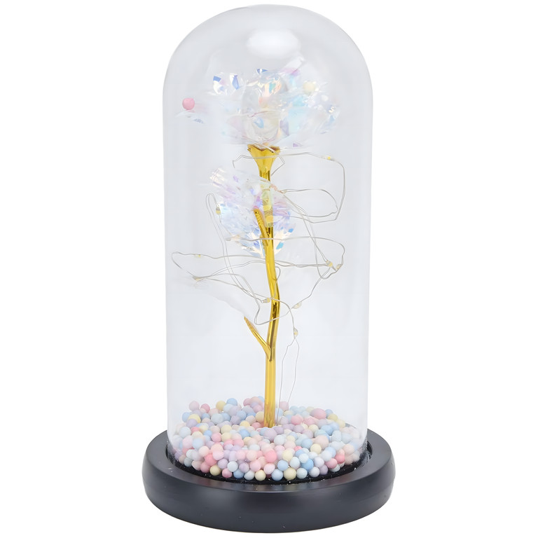 ÖRÖK RÓZSA ÜVEGBEN, CSILLOGÓS, LED-ES, AJÁNDÉKÖTLET