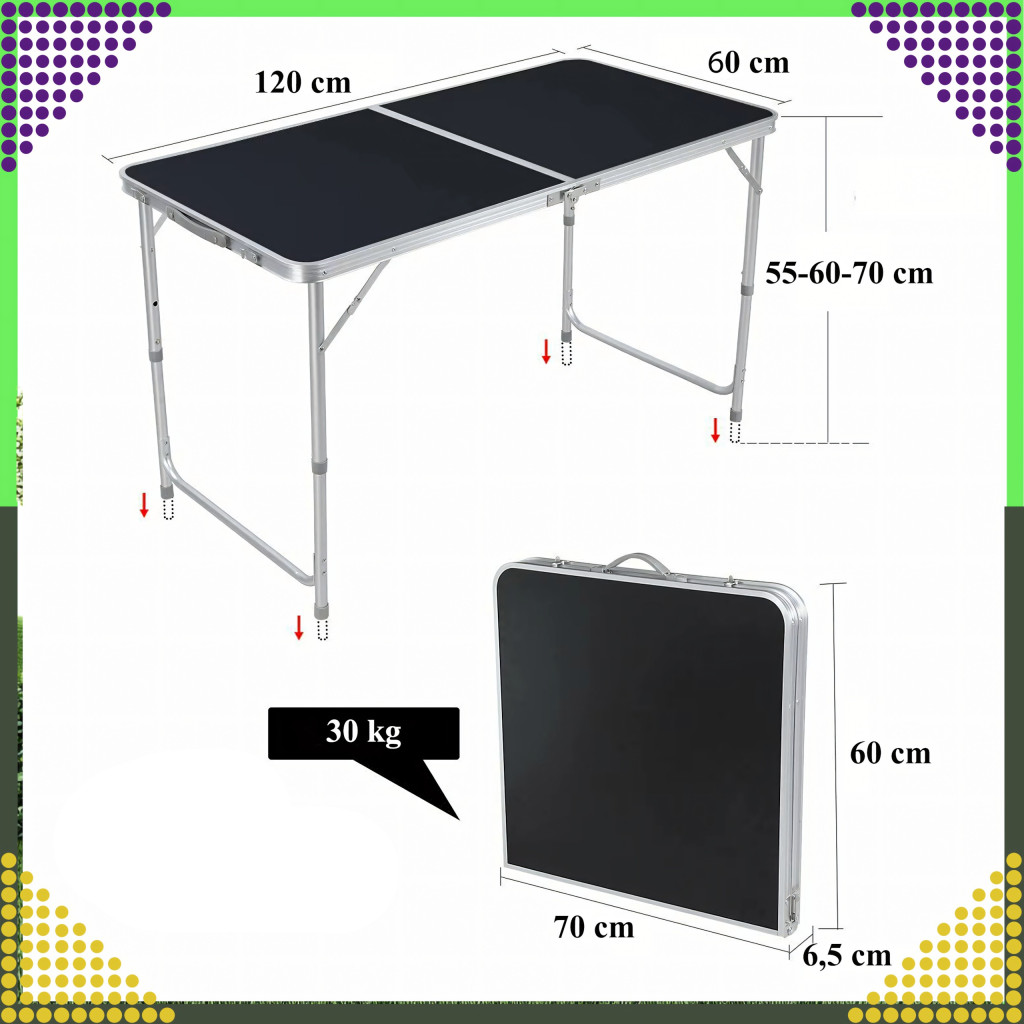 ️ Asztal méretei (hossz/szélesség/magasság): 120cm/60cm/55-60-70cm