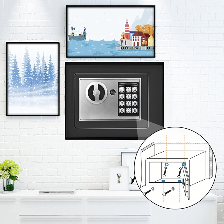 Biztosítsa értékeit elektronikus széfünkkel, amely kombinációs és vészkulcsos is! Vastag, porszórt acélból készült , így hosszú évekre garantálja a tartósságot és a biztonságot. Programozható digitális kóddal (3-8 számjegy) és vészkulccsal felszerelve, teljes hozzáférést biztosít. Tökéletes otthonokba, irodákba, szállodákba vagy üzletekbe, ahol a dokumentumok, ékszerek, pénz és adattároló eszközök védelme elengedhetetlen .