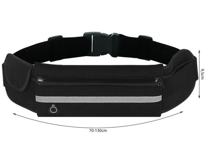 Övtáska futáshoz, 3 zsebbel, fülhallgató csatlakoztatással