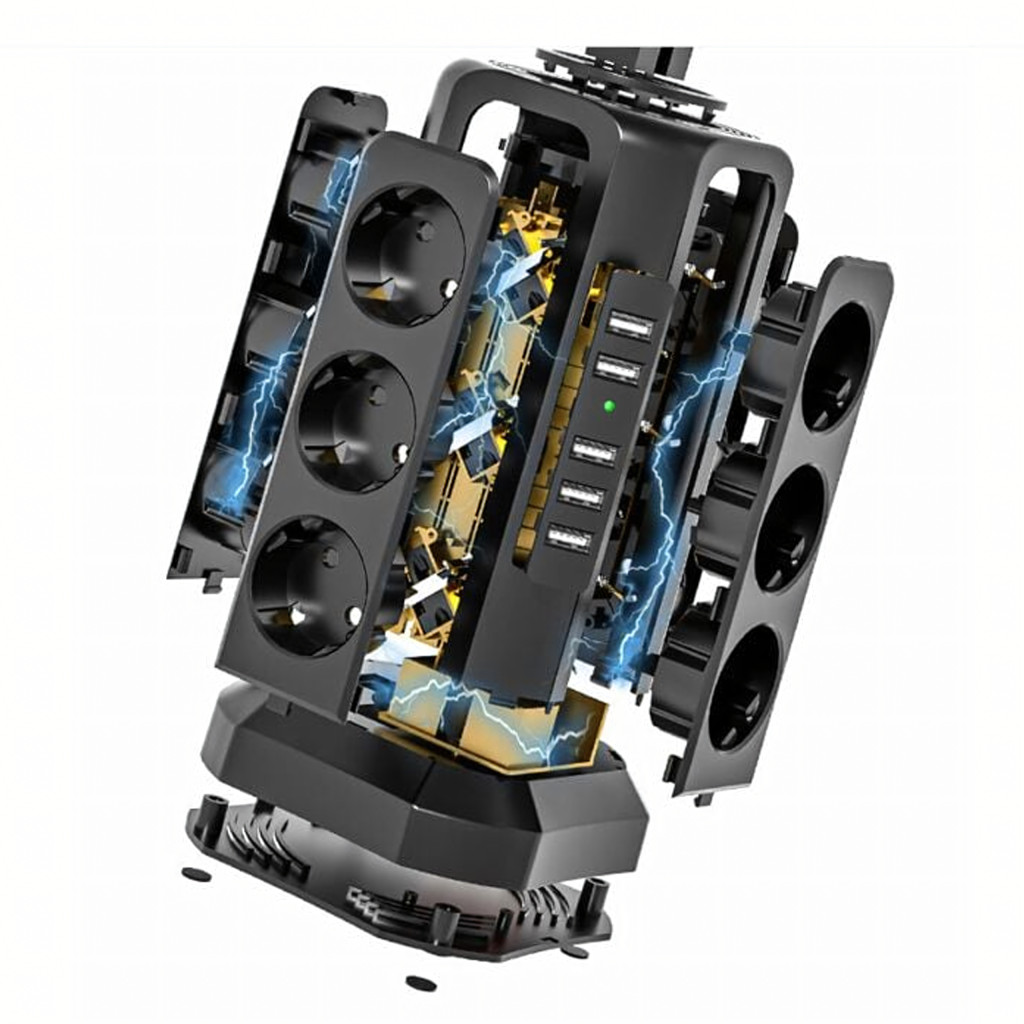 Ez a modern, függőleges elosztó funkcionális és biztonságos megoldás otthoni és irodai használatra egyaránt. Kompakt kialakításának és számos portjának köszönhetően rendszerezheti a teret, és egyszerre több eszközt is működtethet – káosz és kusza kábelek nélkül.