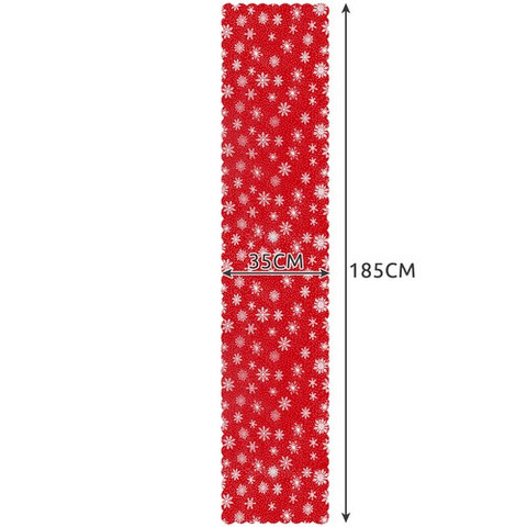 Piros karácsonyi asztali futó fehér hópelyhekkel 185×35 cm ünnepi dekoráció