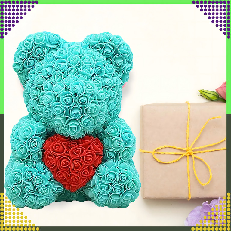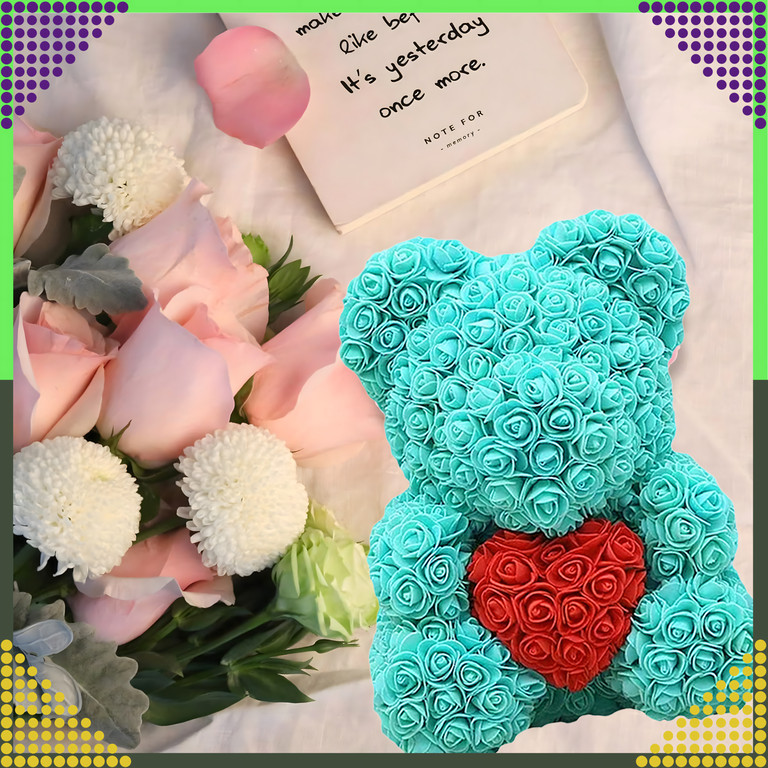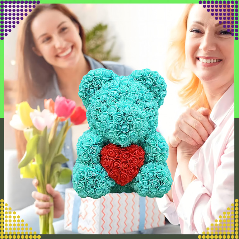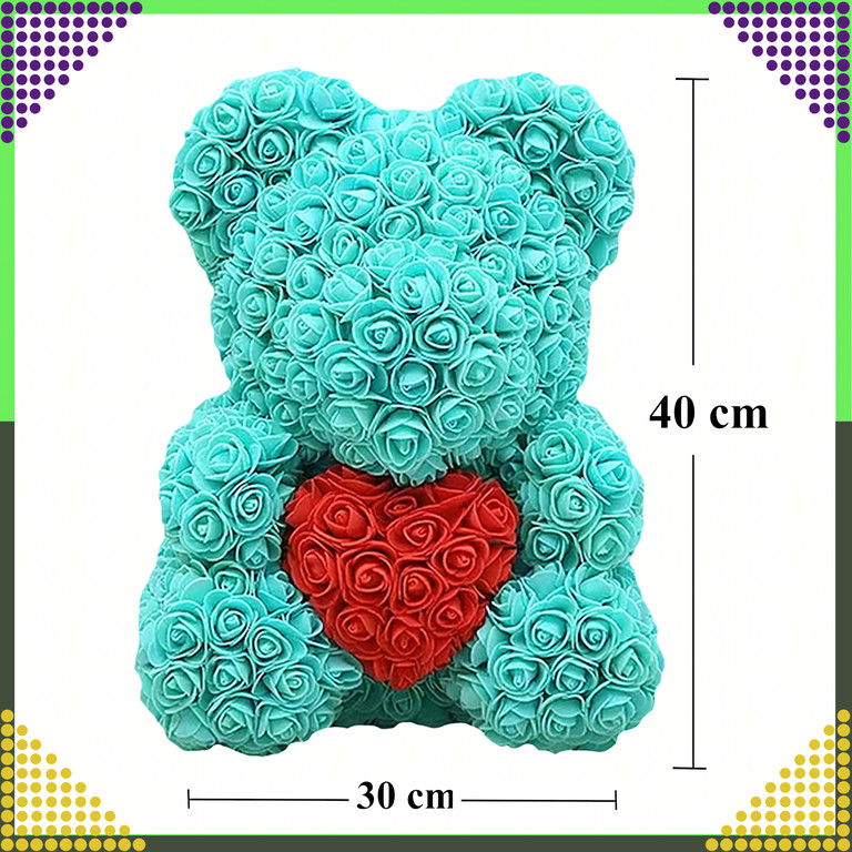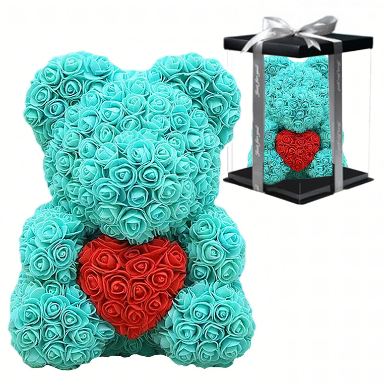 Évekig tartó tartósság: Habszivacs rózsákból készült, amelyek nem veszítik el a színüket vagy formájukat, így a mackó sokáig szép marad.