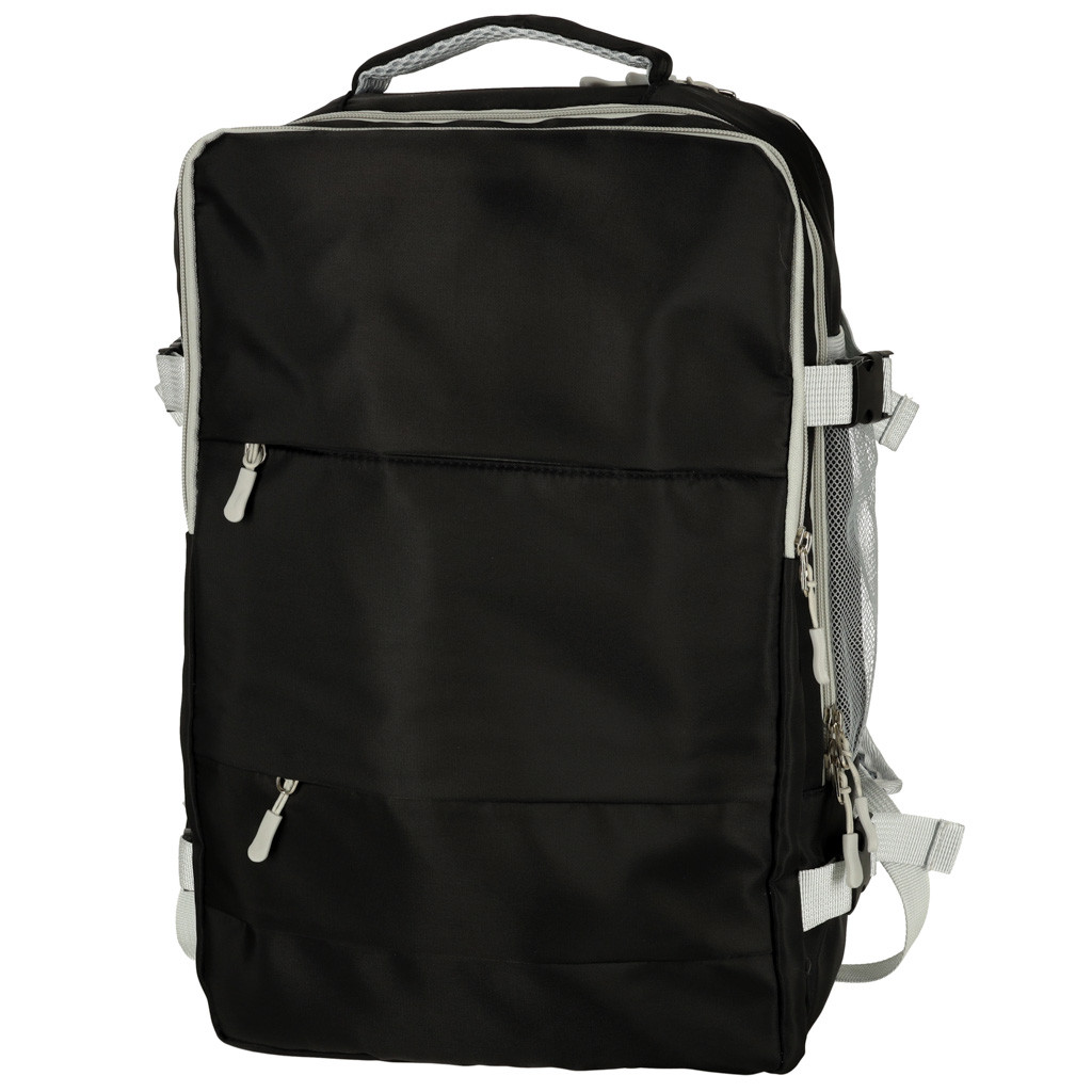 Fekete utazóhátizsák , ideális bármilyen utazáshoz – kompakt méretének köszönhetően kézipoggyászként is használható a repülőn . Vízálló anyagból készült , hogy a hátizsákban lévő összes tárgy biztonságban legyen. A nagyszámú zseb és rekesz azt jelenti, hogy rengeteg hely van minden szükséges holminak. Még egy külön rekesszel is rendelkezik a cipők számára . USB-porttal is felszerelt , amely adapterként használható elektromos eszközök töltéséhez.