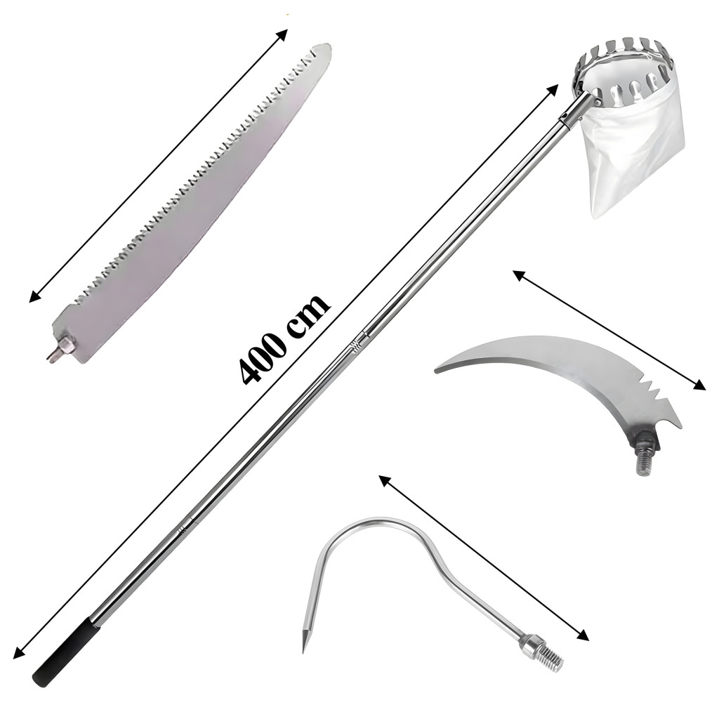 400 cm-es teleszkópos nyél – akár a magas lombkoronákat is elérheted.
